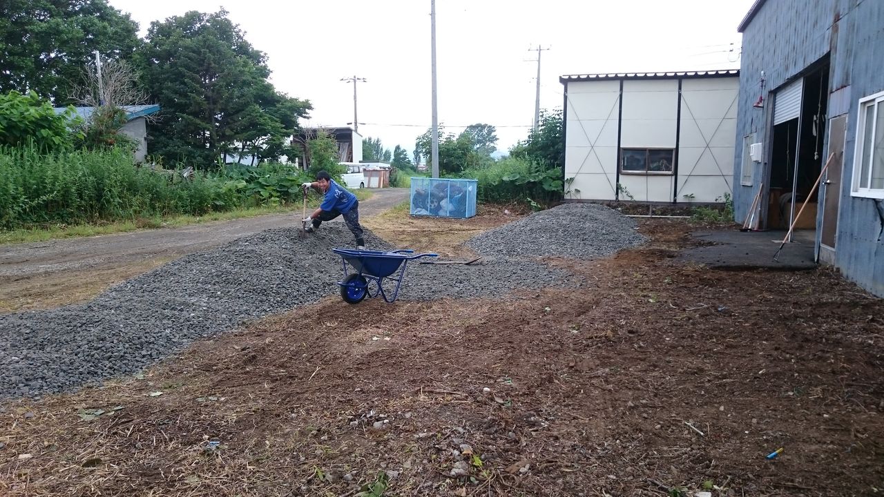 大量の砕石を買ったのでその後の地均しは自分たちでやりましょう