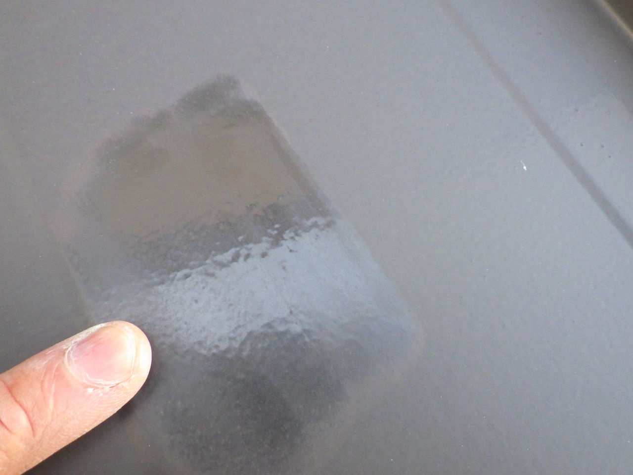 チョーキングした表面の下には艶のある塗装膜が出てきます。