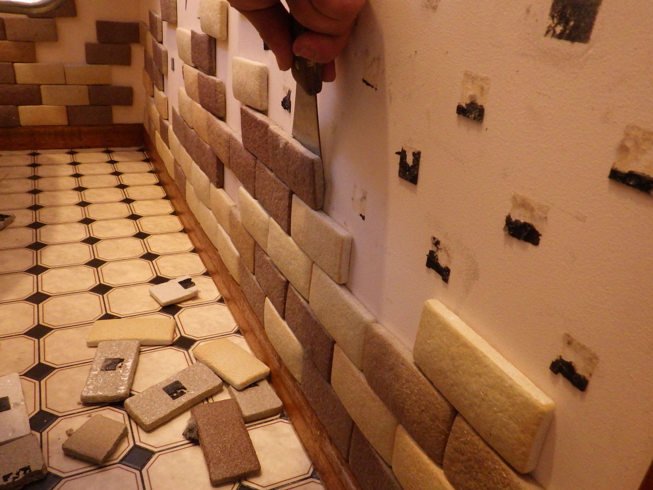 タイル調パネルはブチルブルテープで接着されていたのでほとんどが