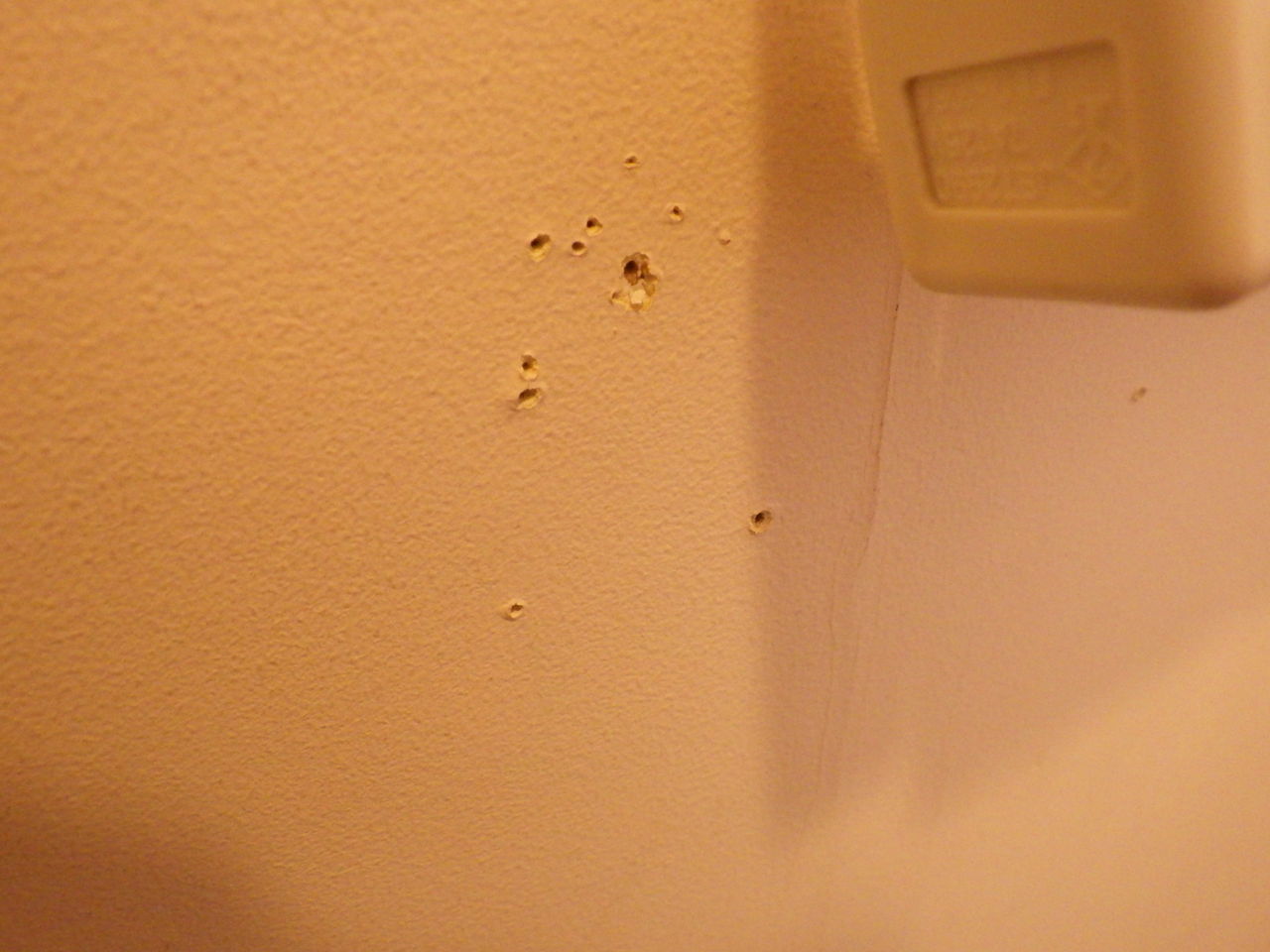 壁面にはその他、画鋲跡やひび割れなどもあったのでパテで補修