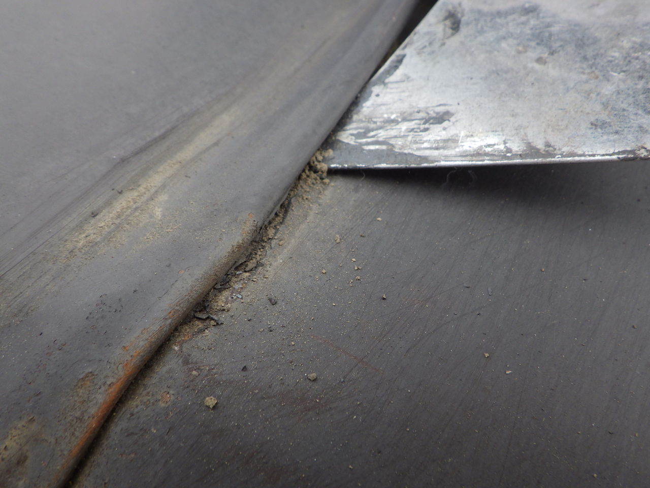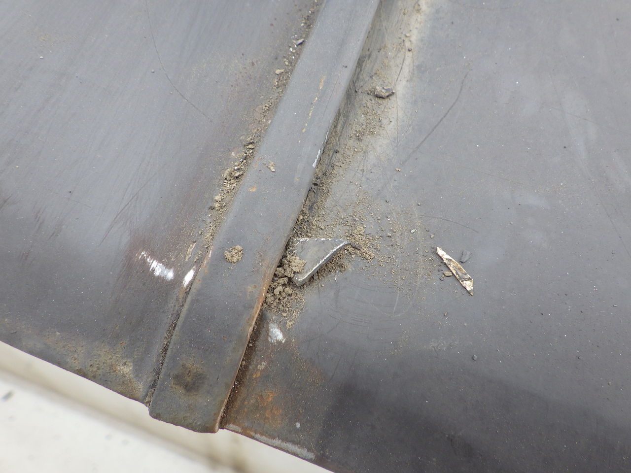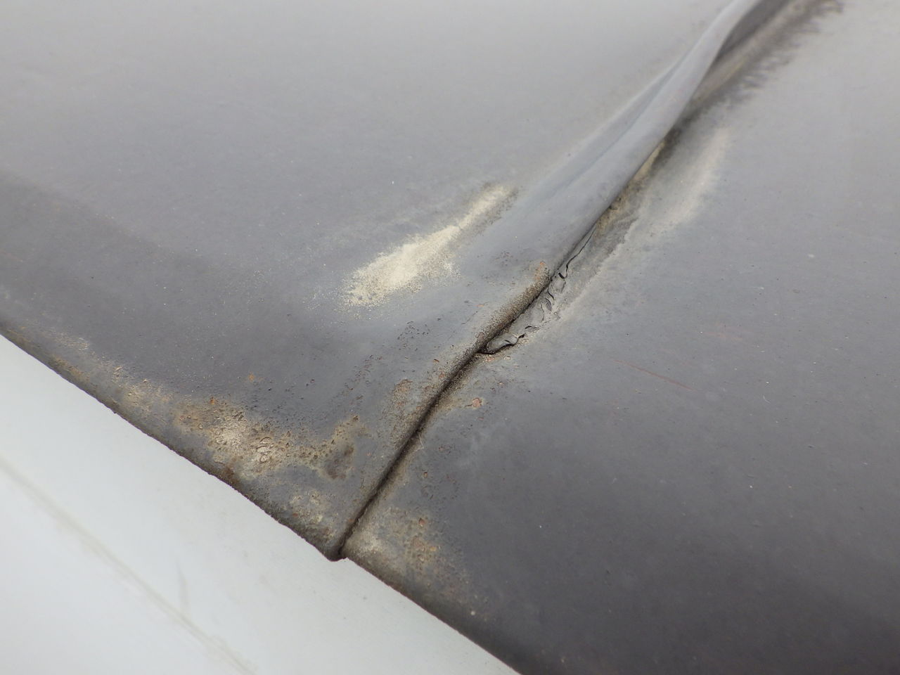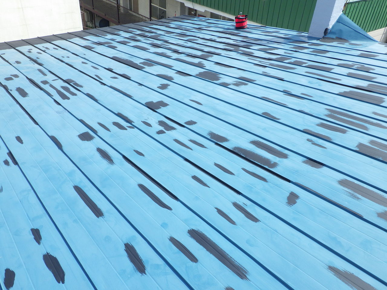 グレー色のサビ止め塗料で部分補修塗りを先行します