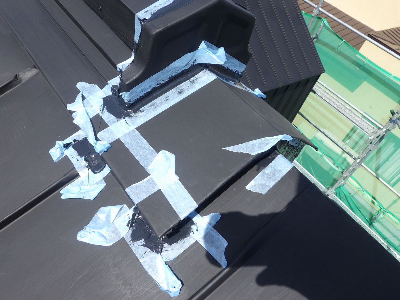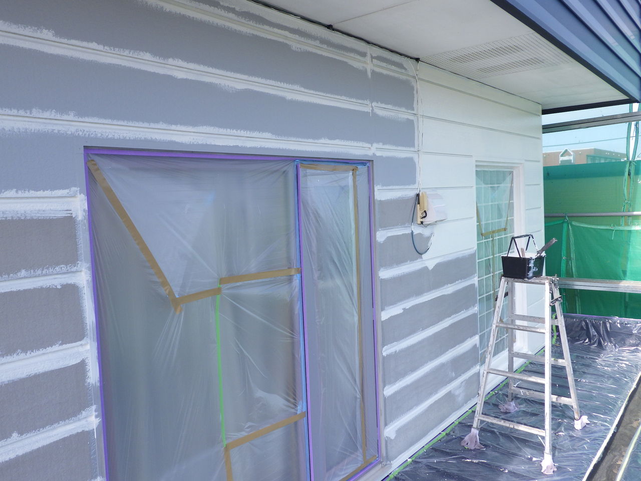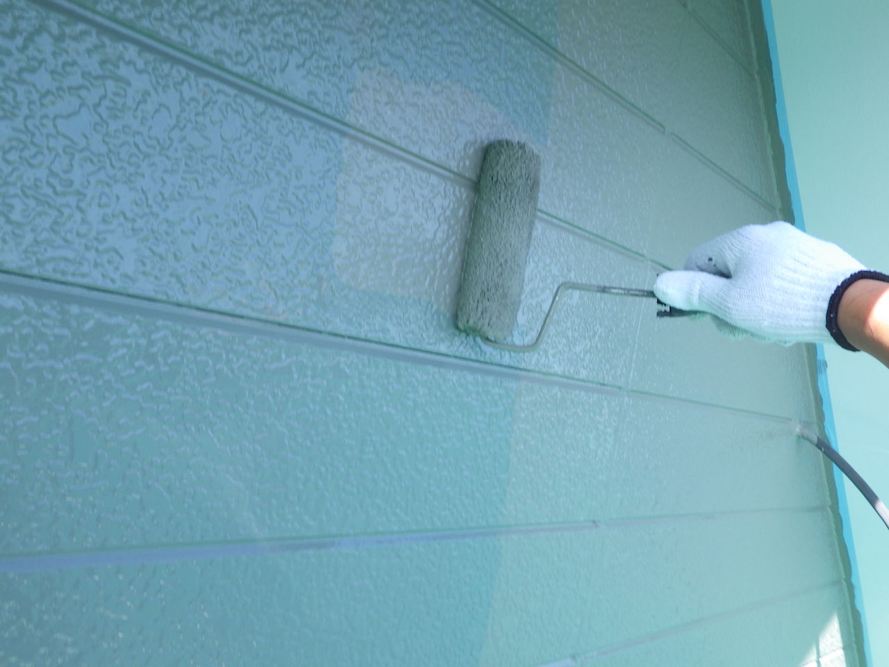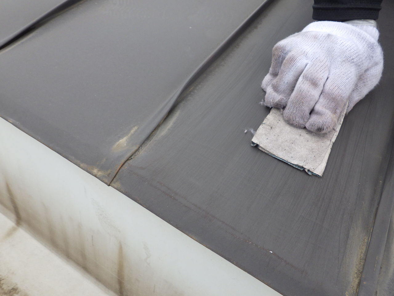 端末シーリングで防水処理をした後、樹脂プライマーを塗装し