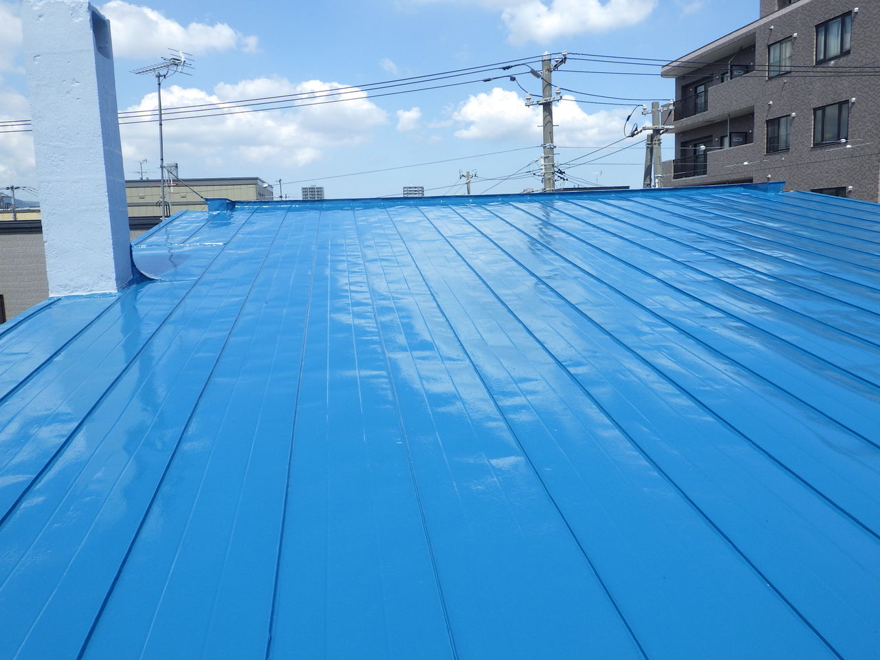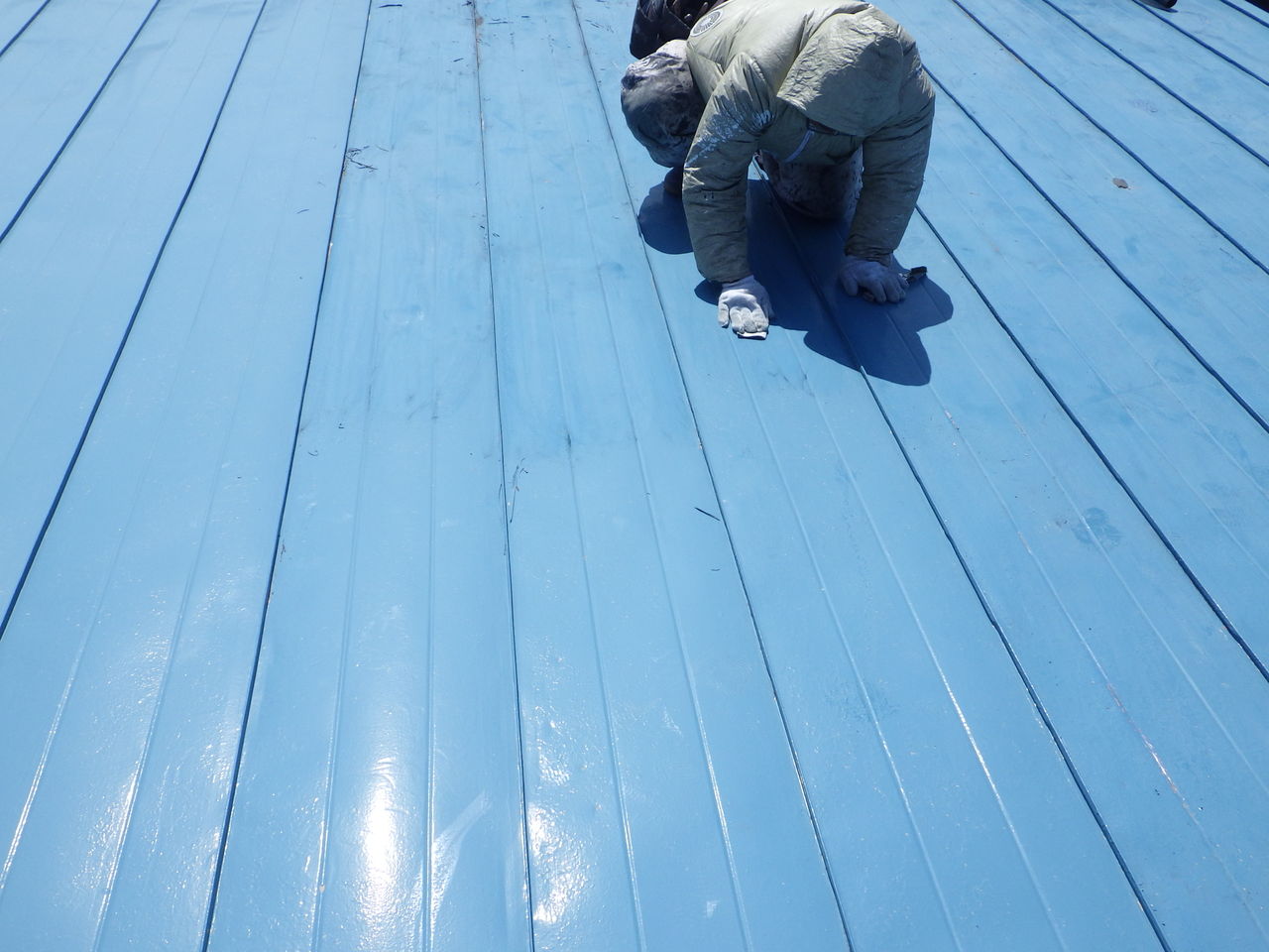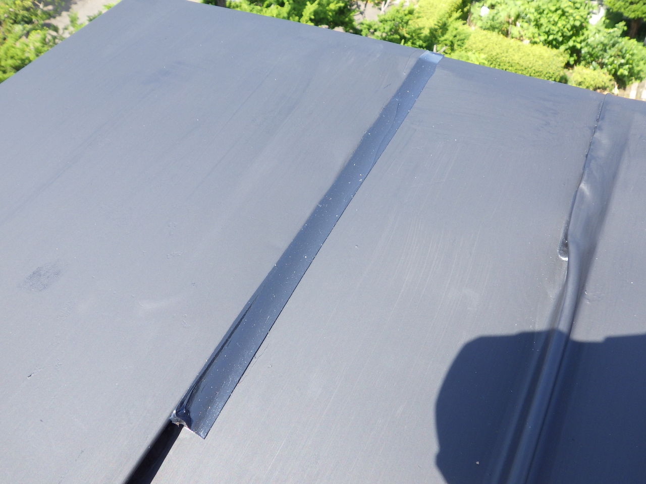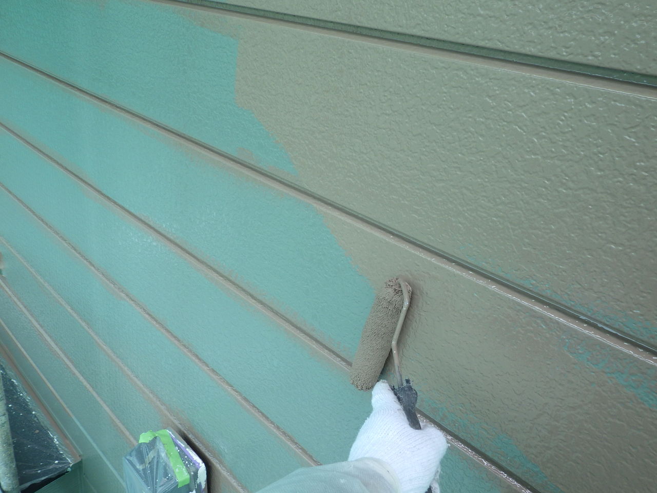 端末シーリングで防水処理をした後、樹脂プライマーを塗装し