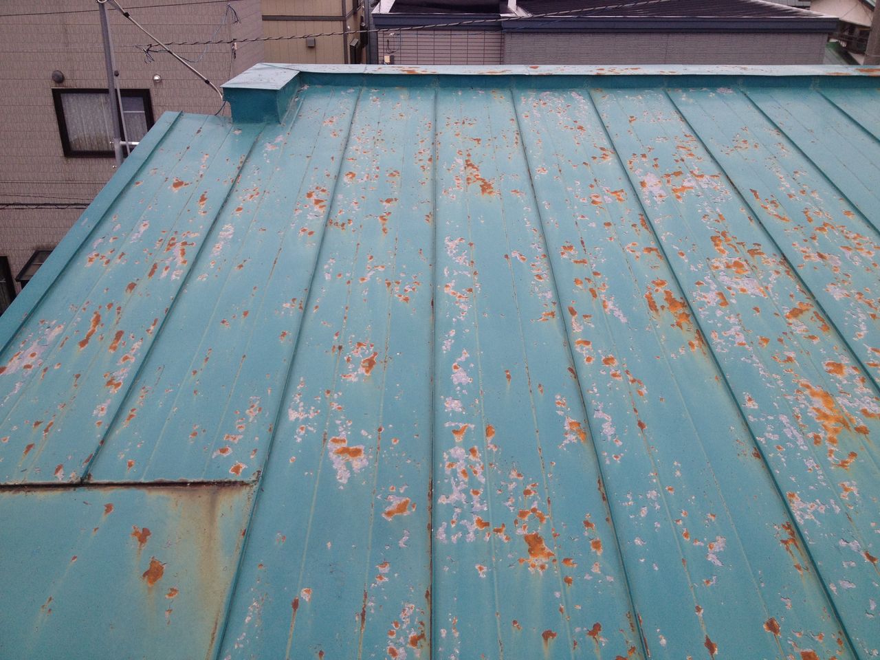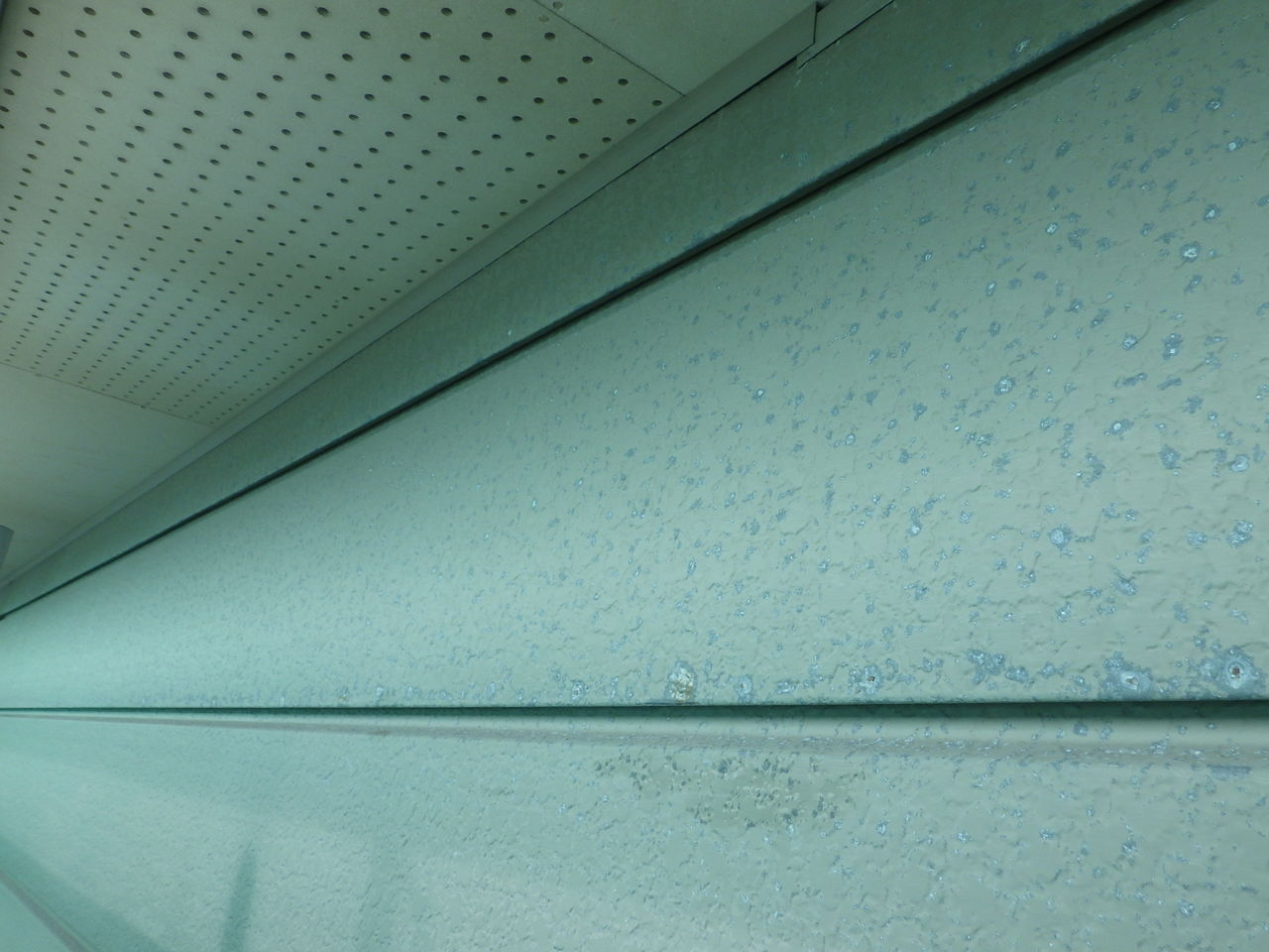 その後は、軒天井の近くに出ている白サビを入念に研磨してから