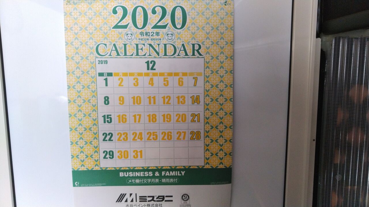 カレンダーもついに2020年!