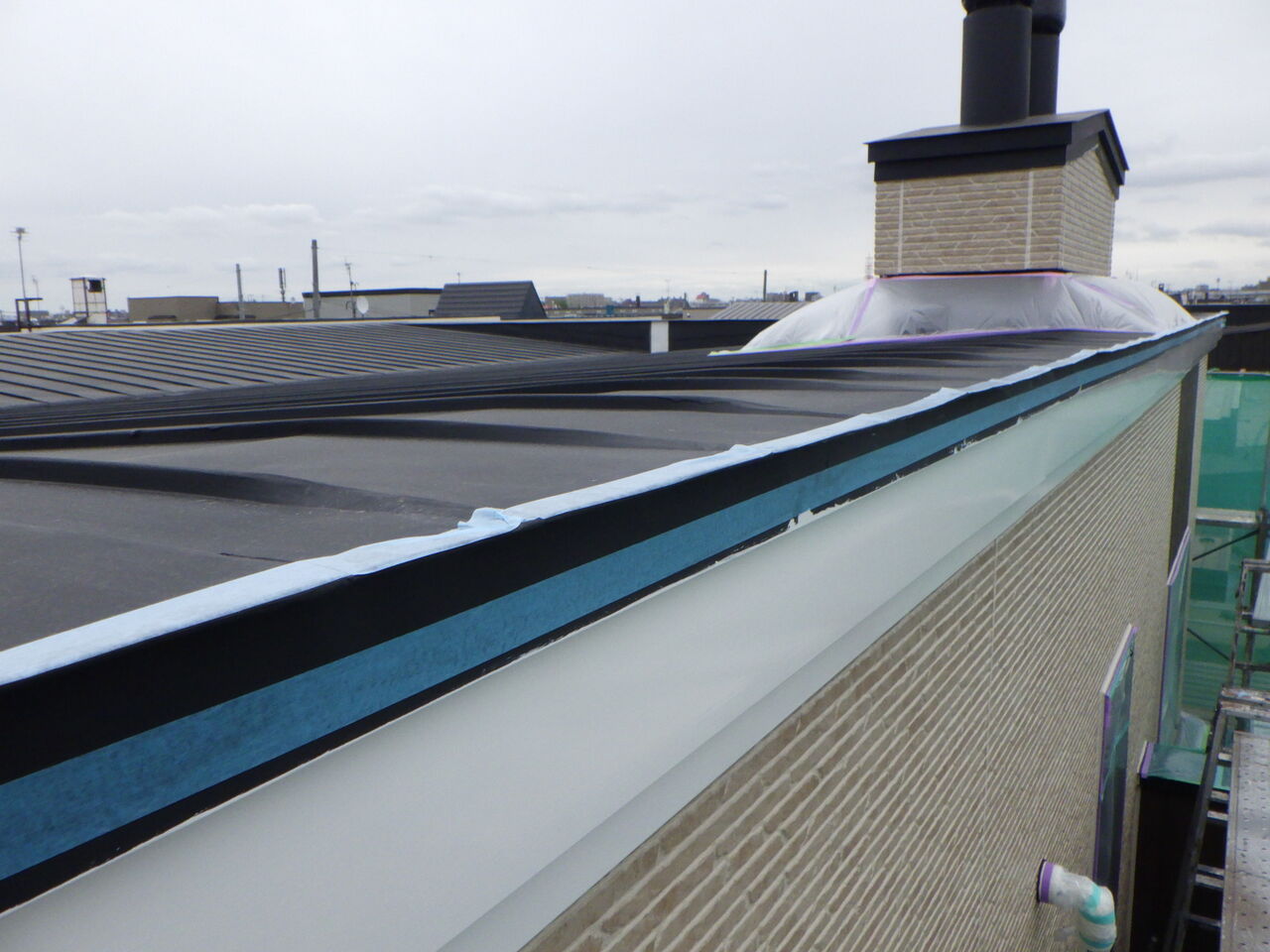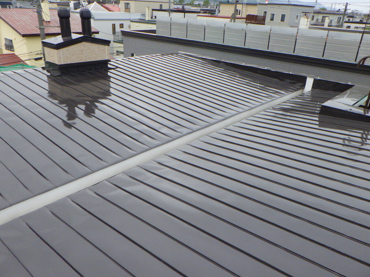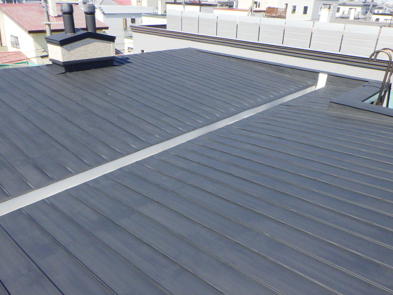 屋根は全面研磨下地処理後に黒色サビ止め全面塗装