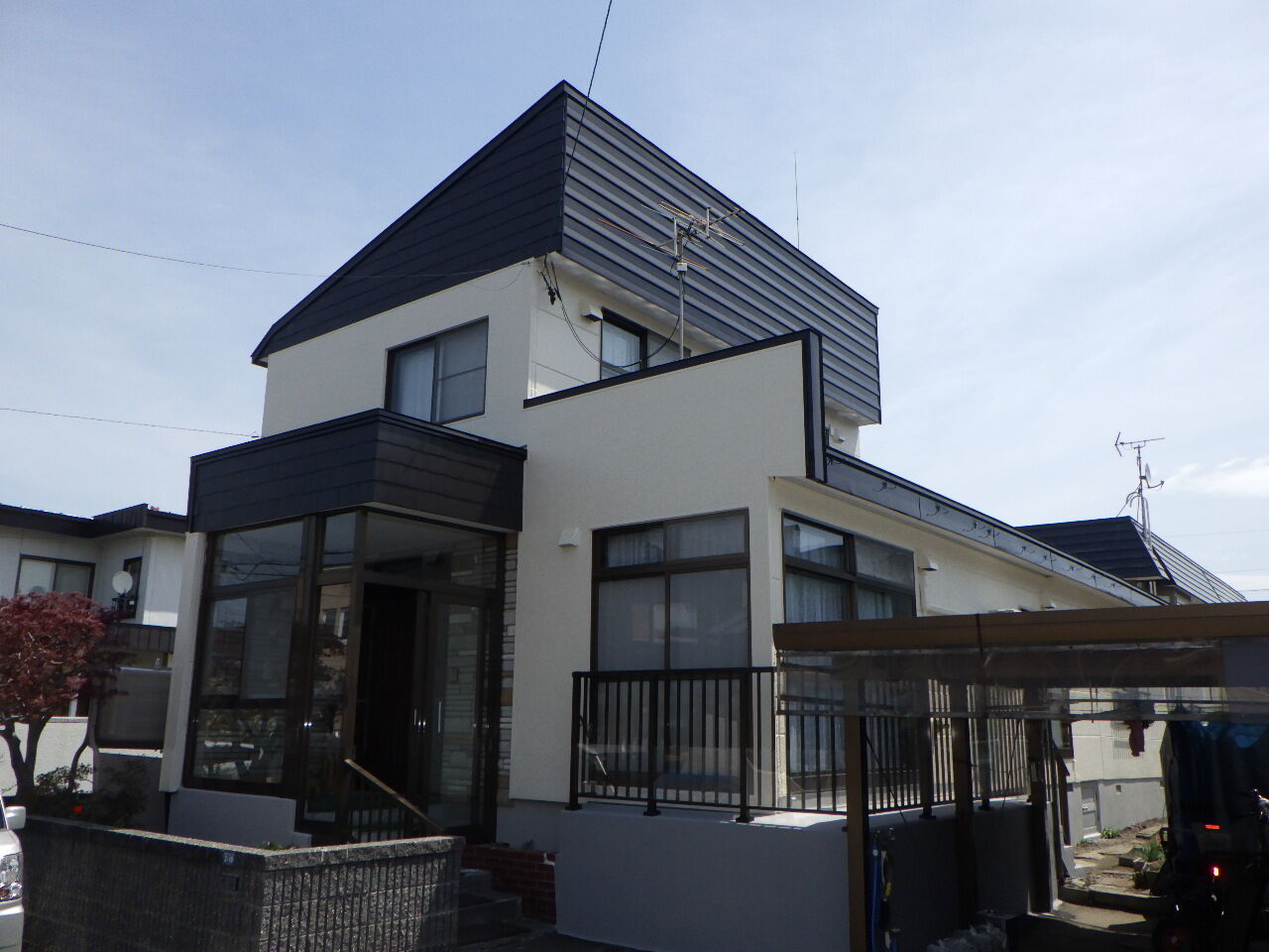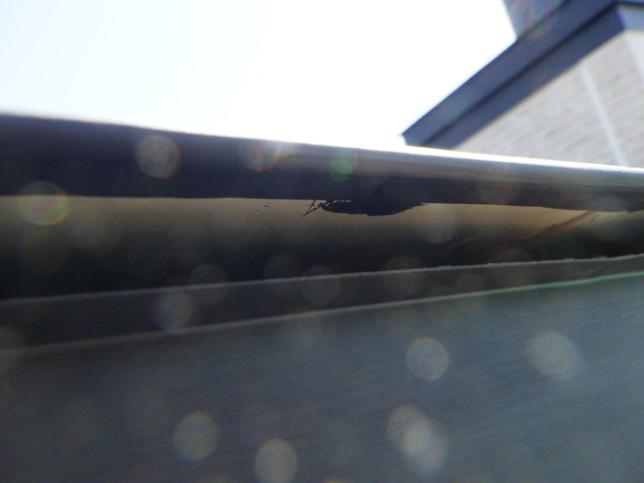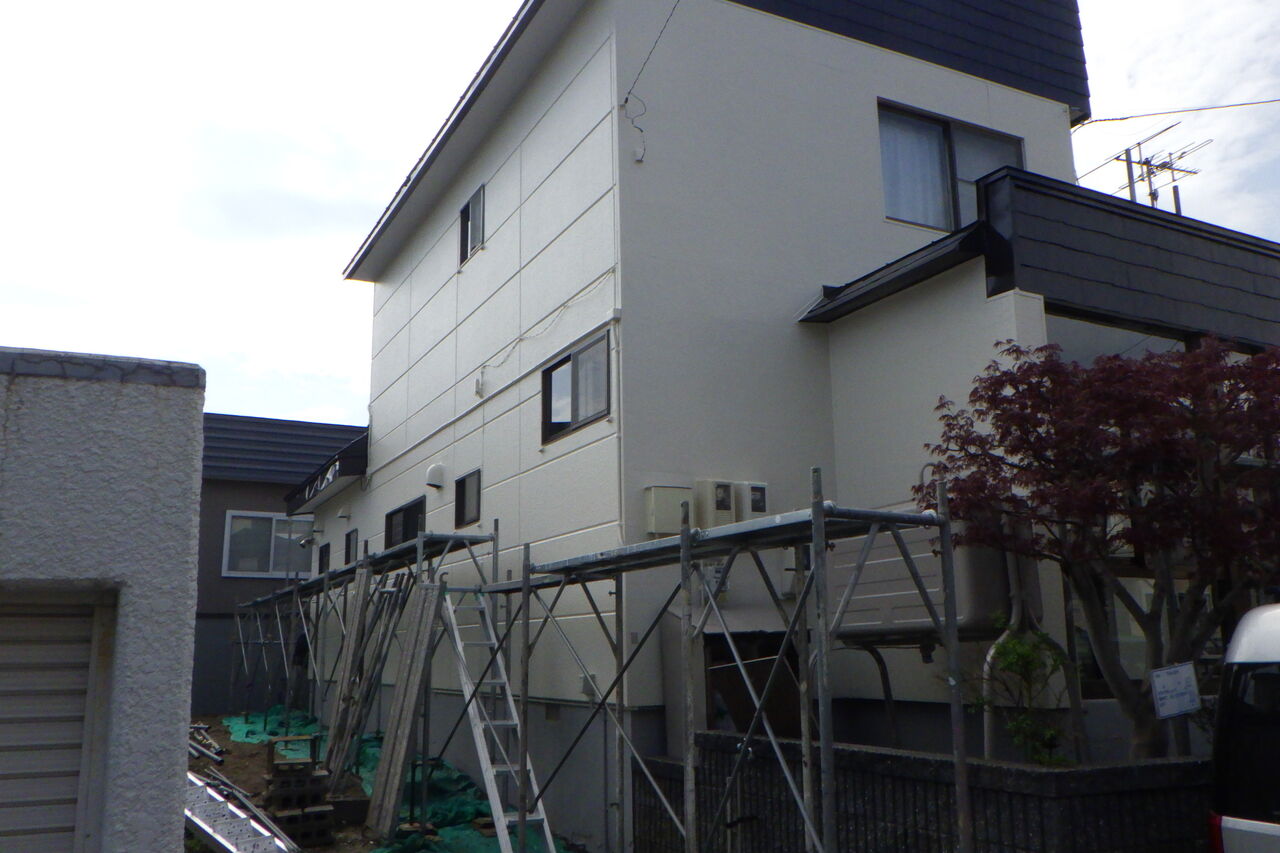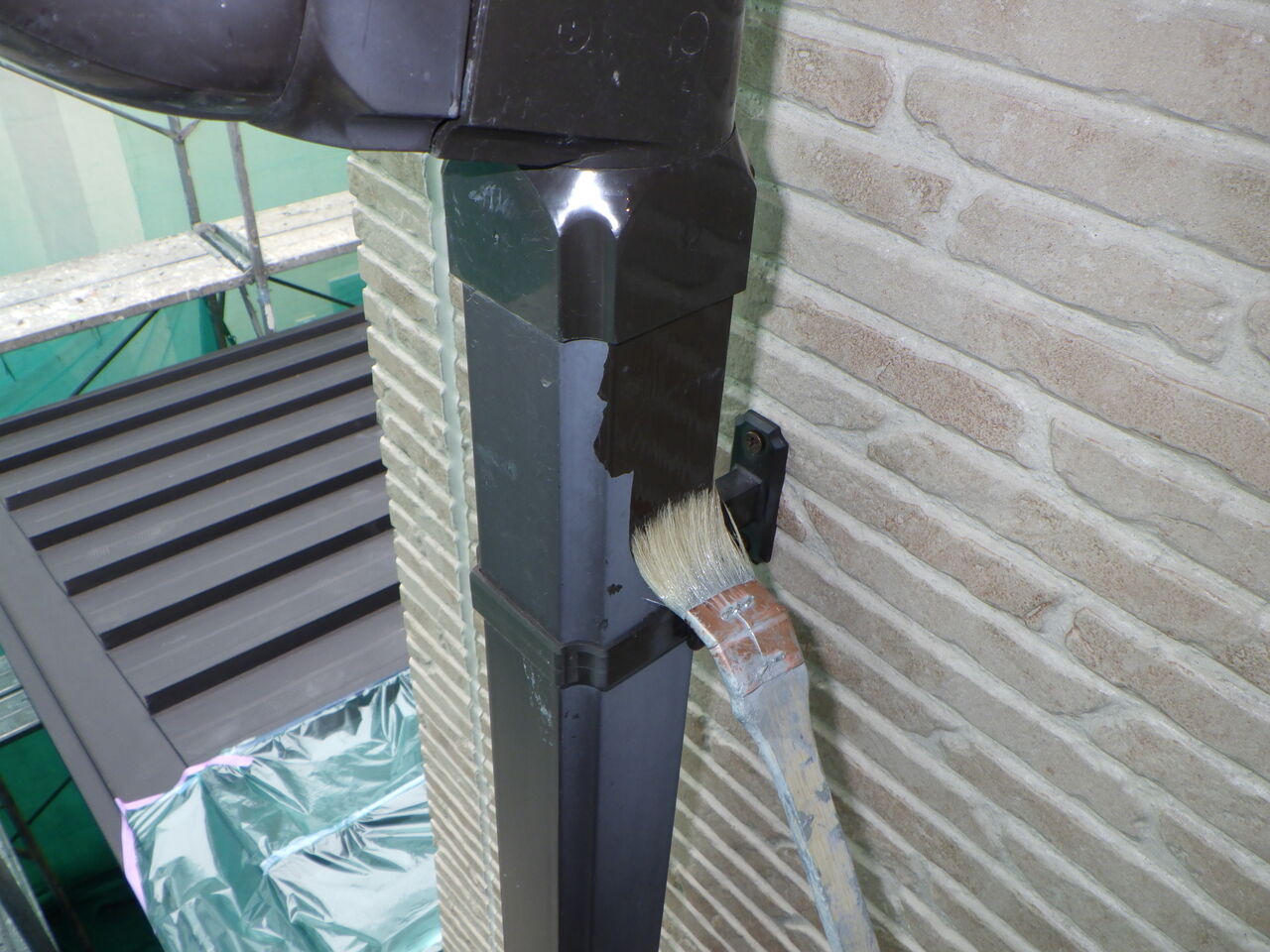 北海道の住宅には珍しい雨樋、この建材は塗料との相性が悪く