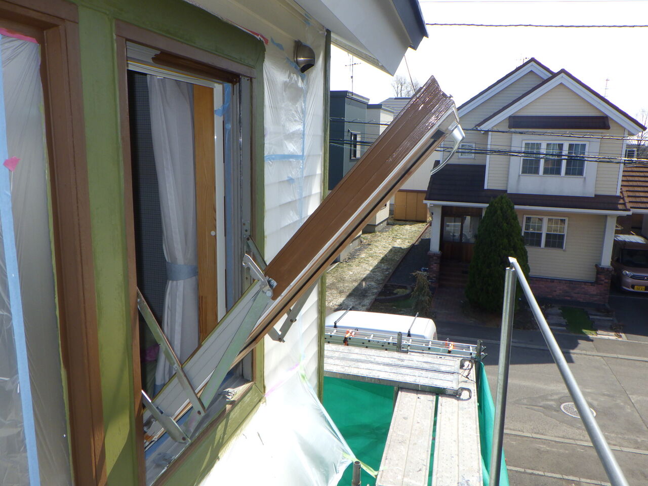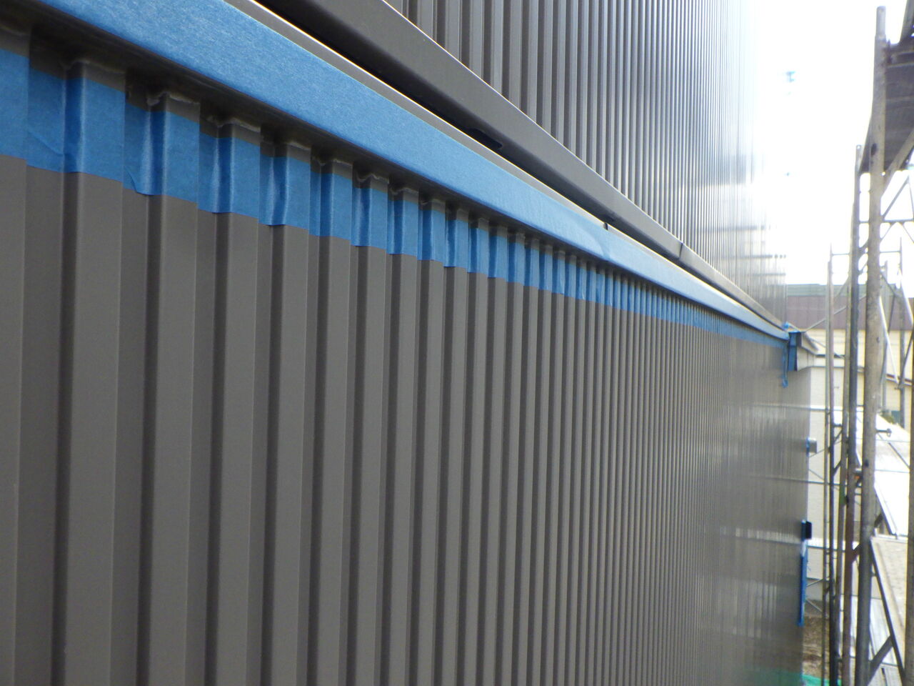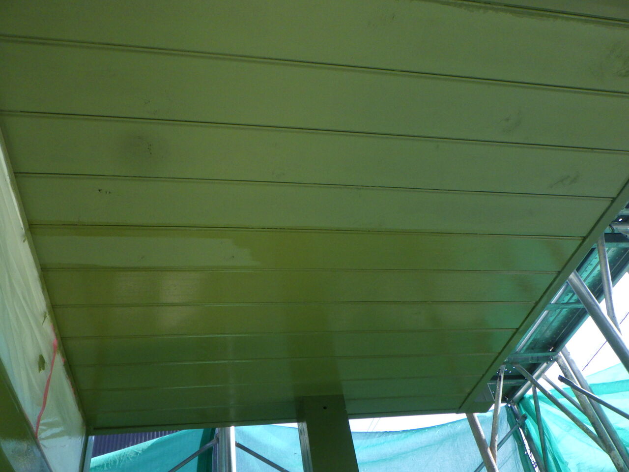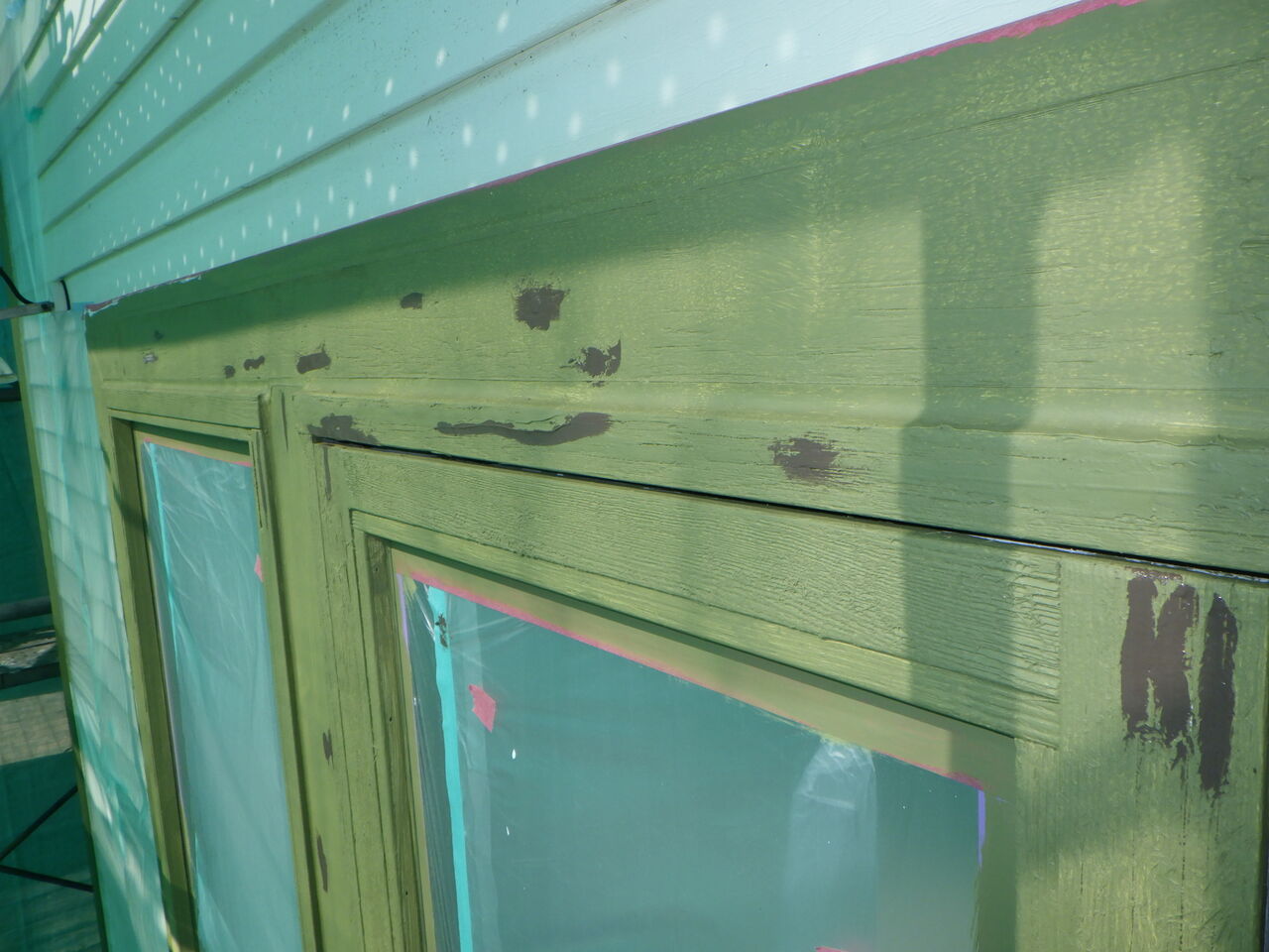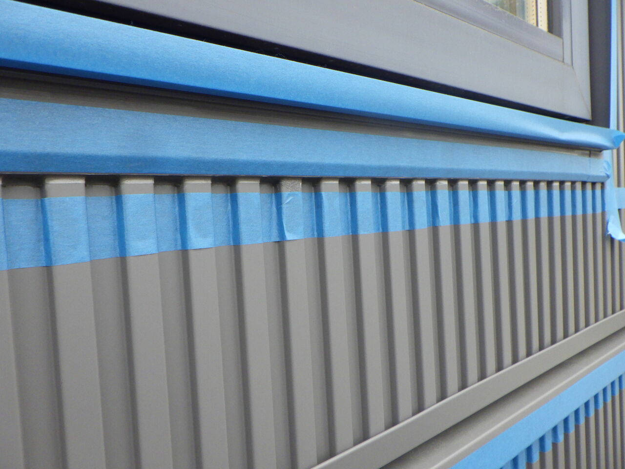 シーリング作業が終わり、養生作業を進めていると