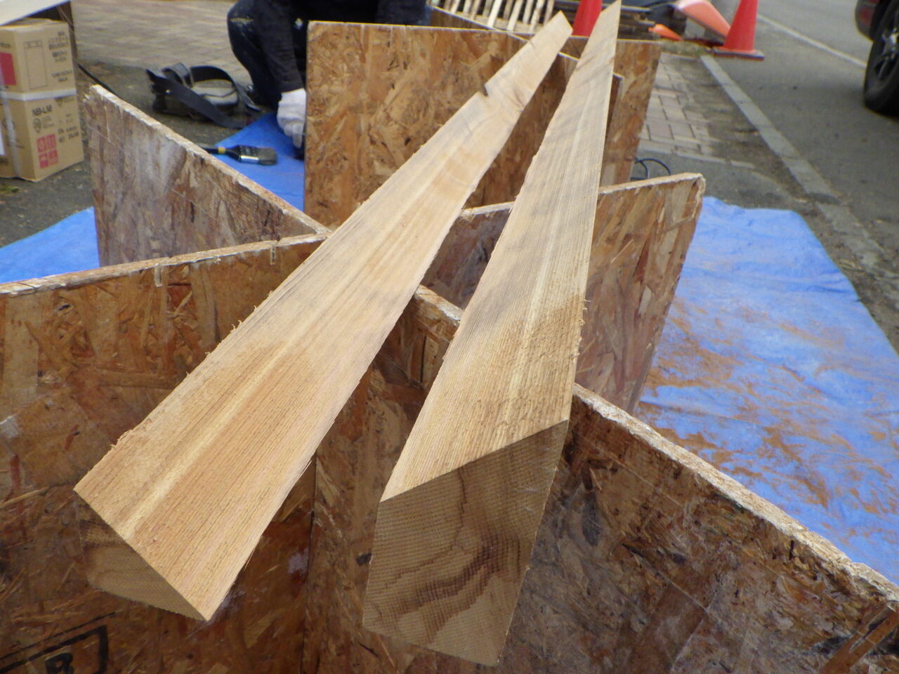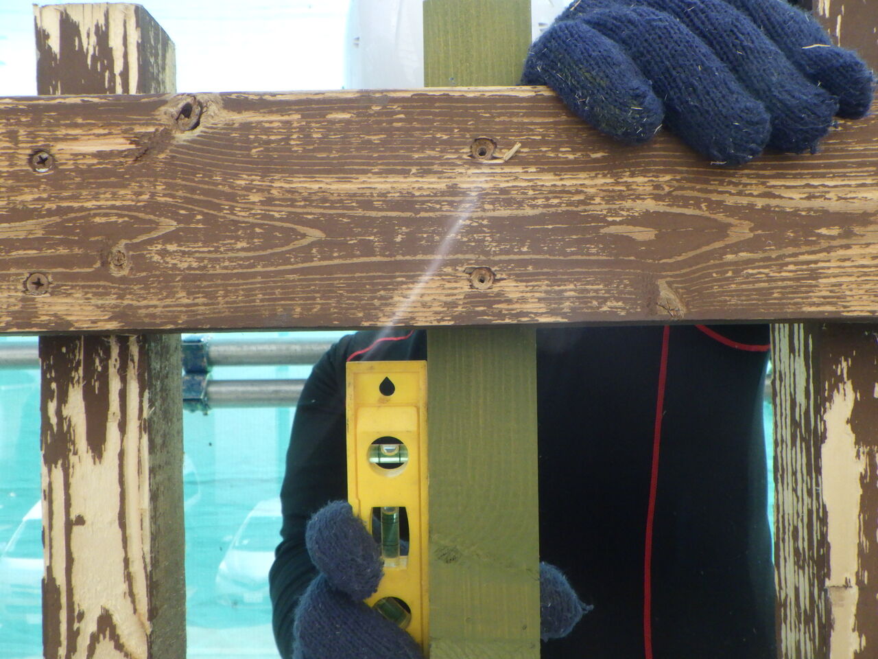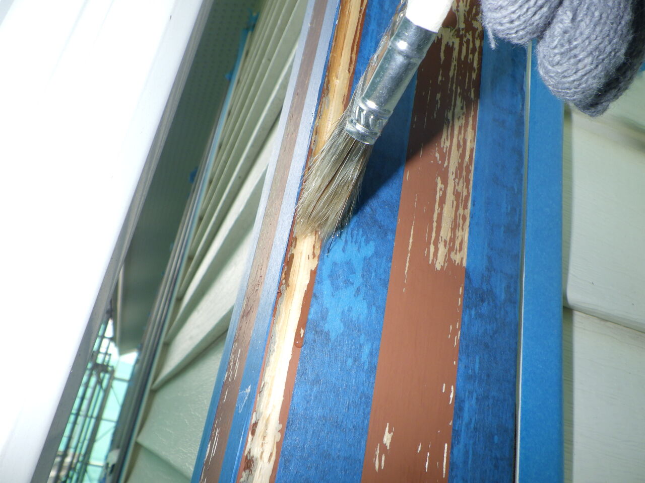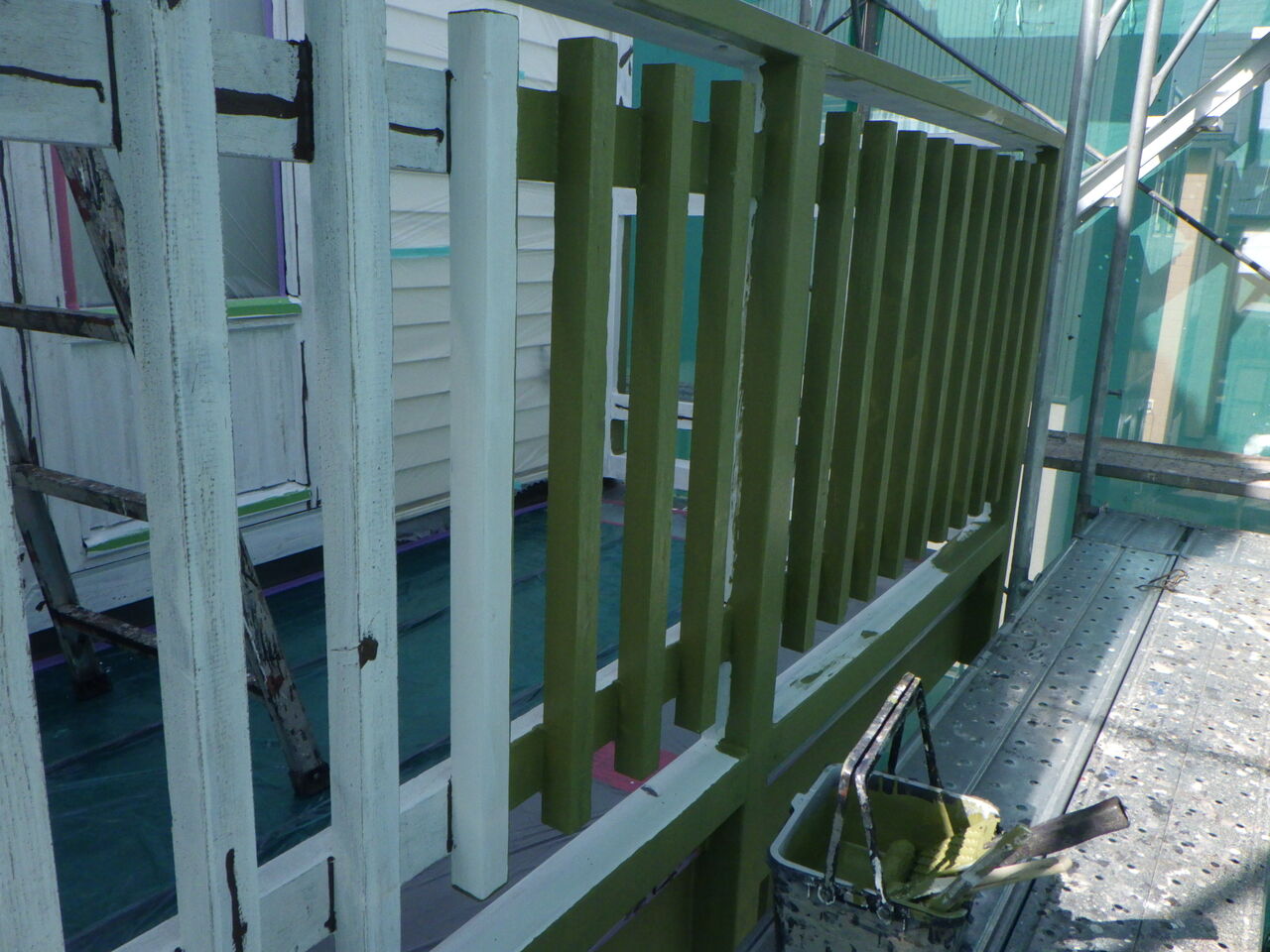 シーリング作業が終わり、養生作業を進めていると
