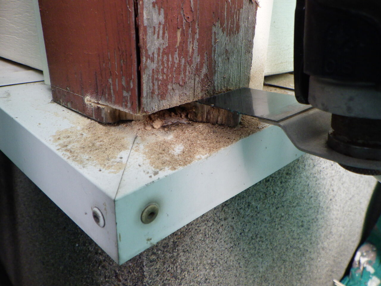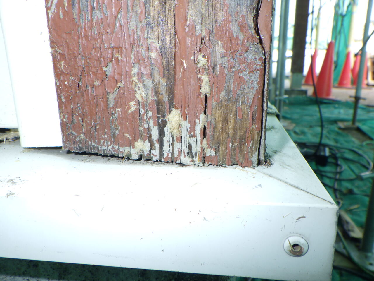 シーリング作業で邪魔になるので仮撤去します。
