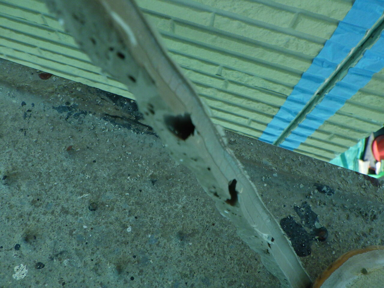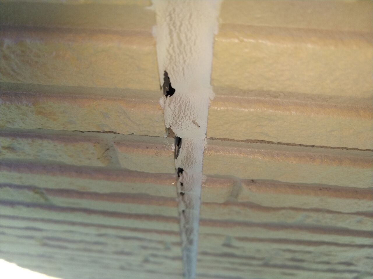 撤去した既存シーリングの状態ですが、穴が沢山開いています。