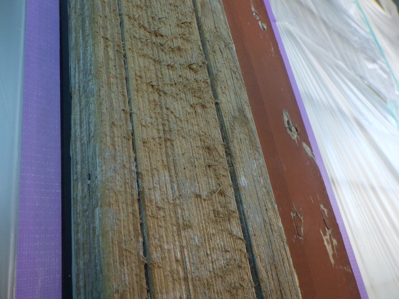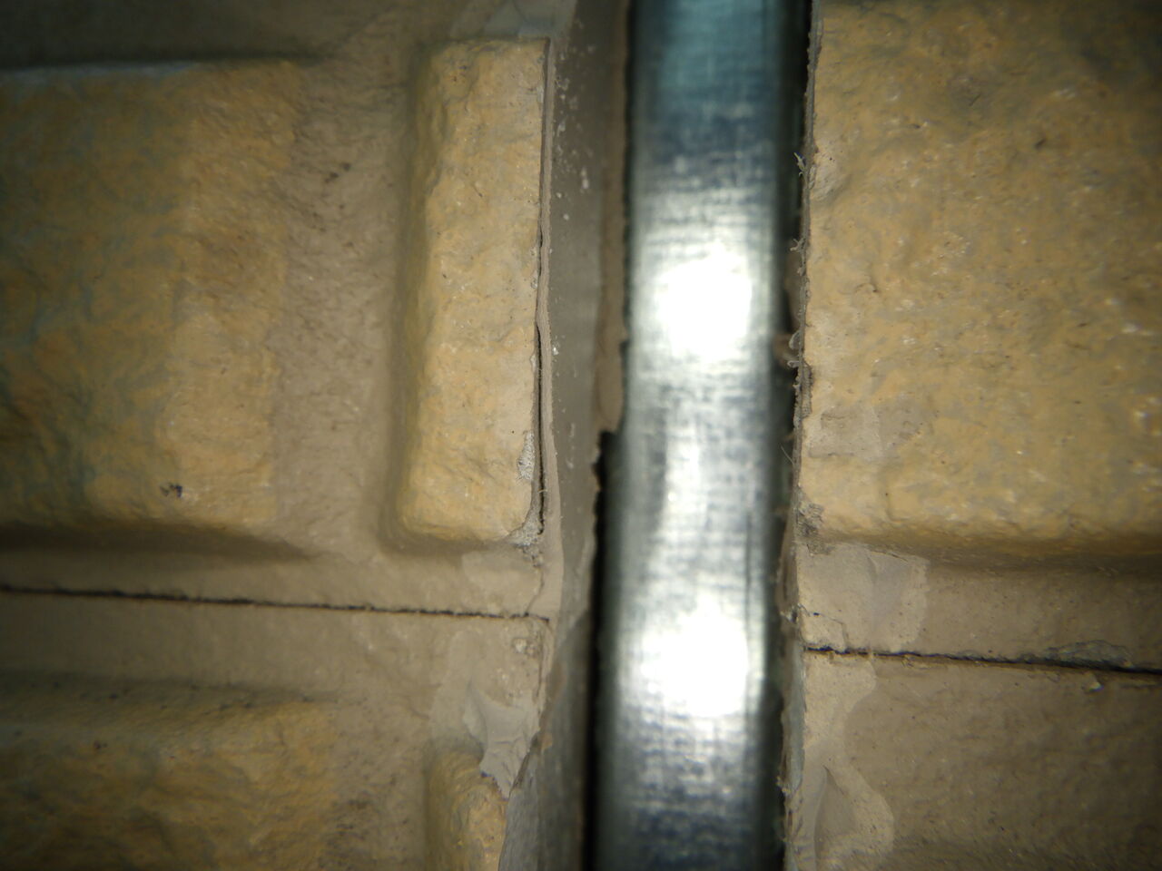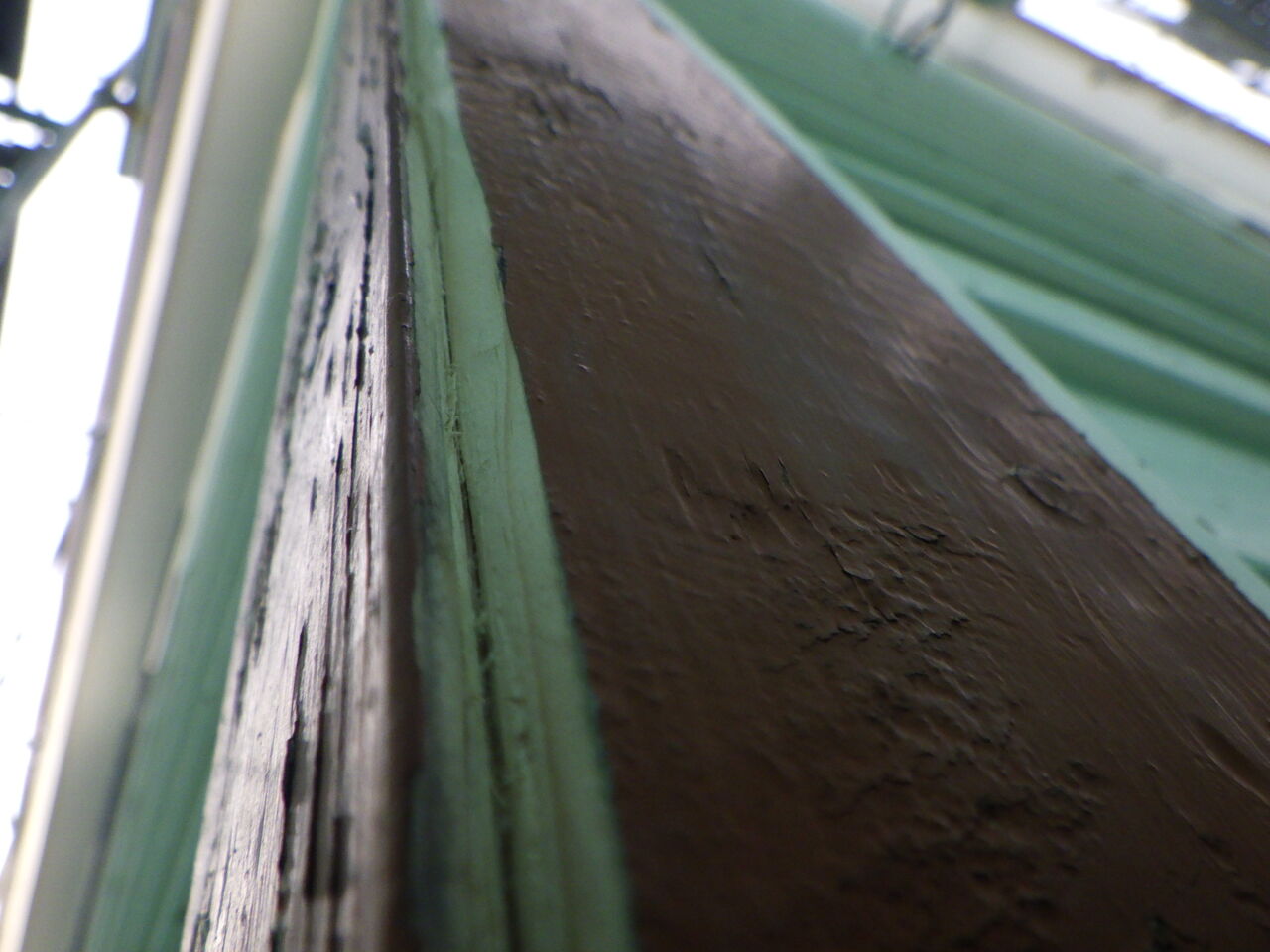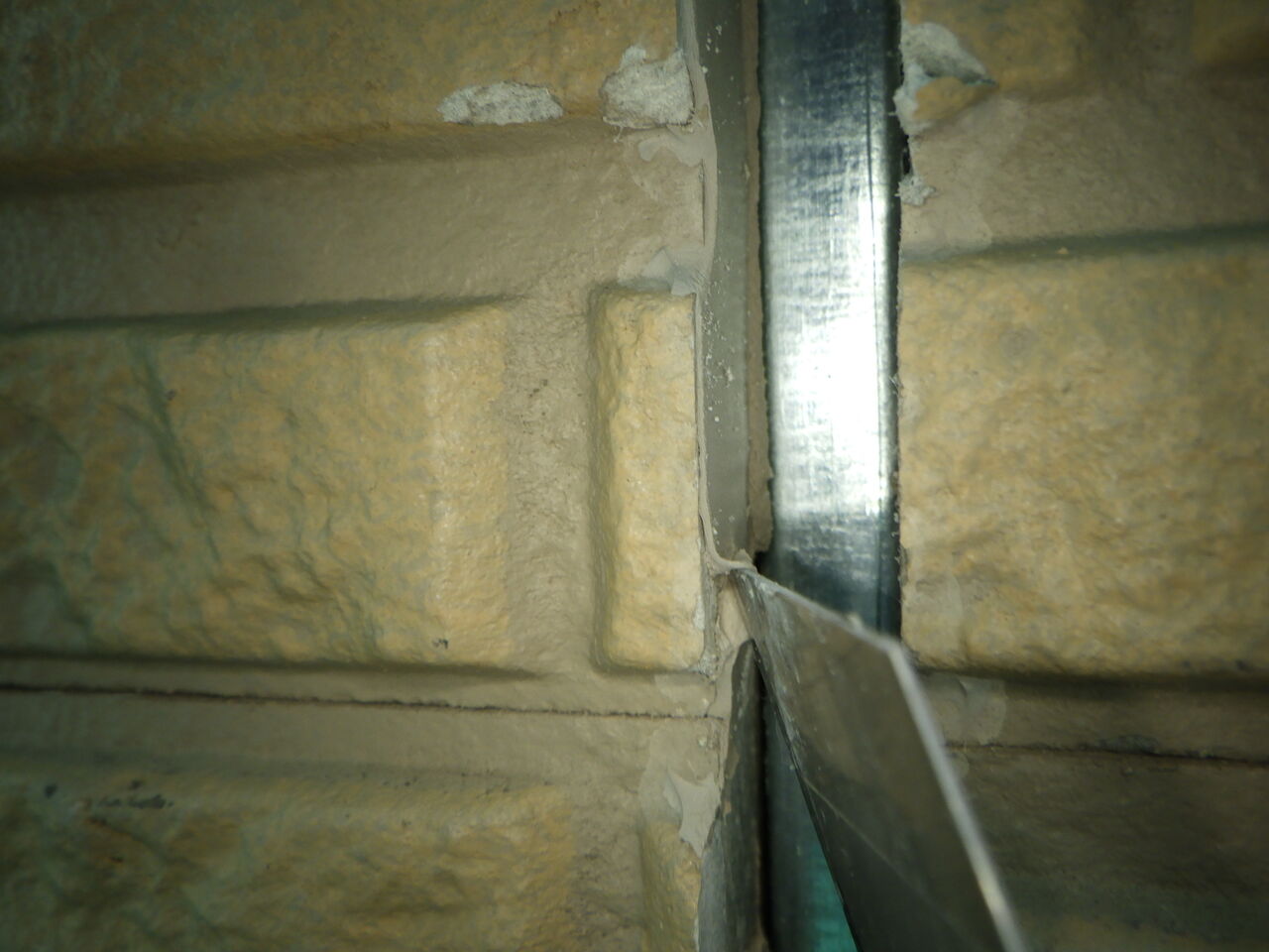 両サイドに既存シーリングが薄く残っていて、そのシーリングが