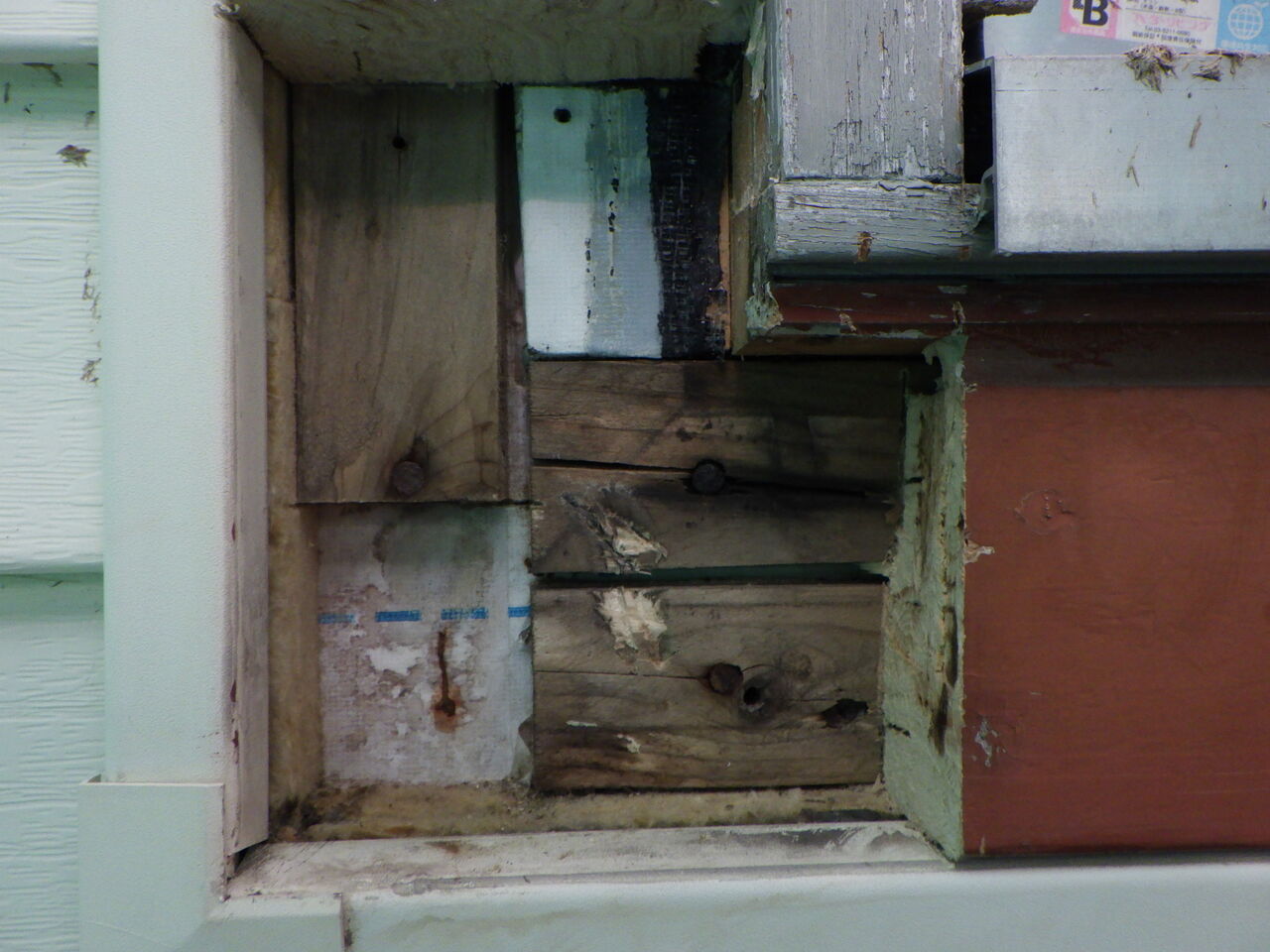 窓廻りは底が抜けた状態になるので丸バッカーを充填します。