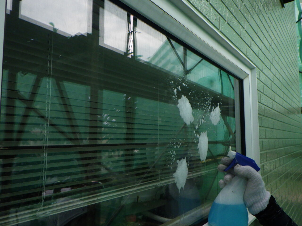塗装完了後は窓ガラスをクリーニングします。