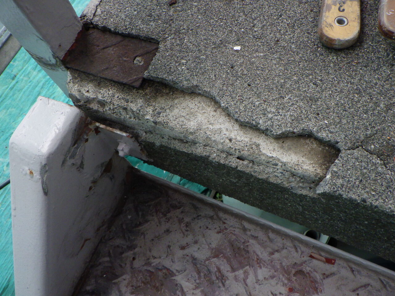 バルコニー床面の欠損。
