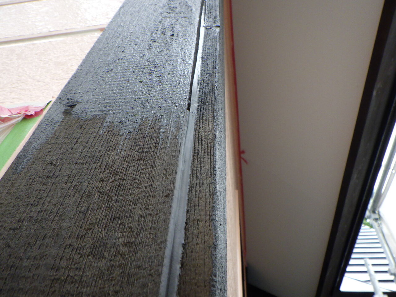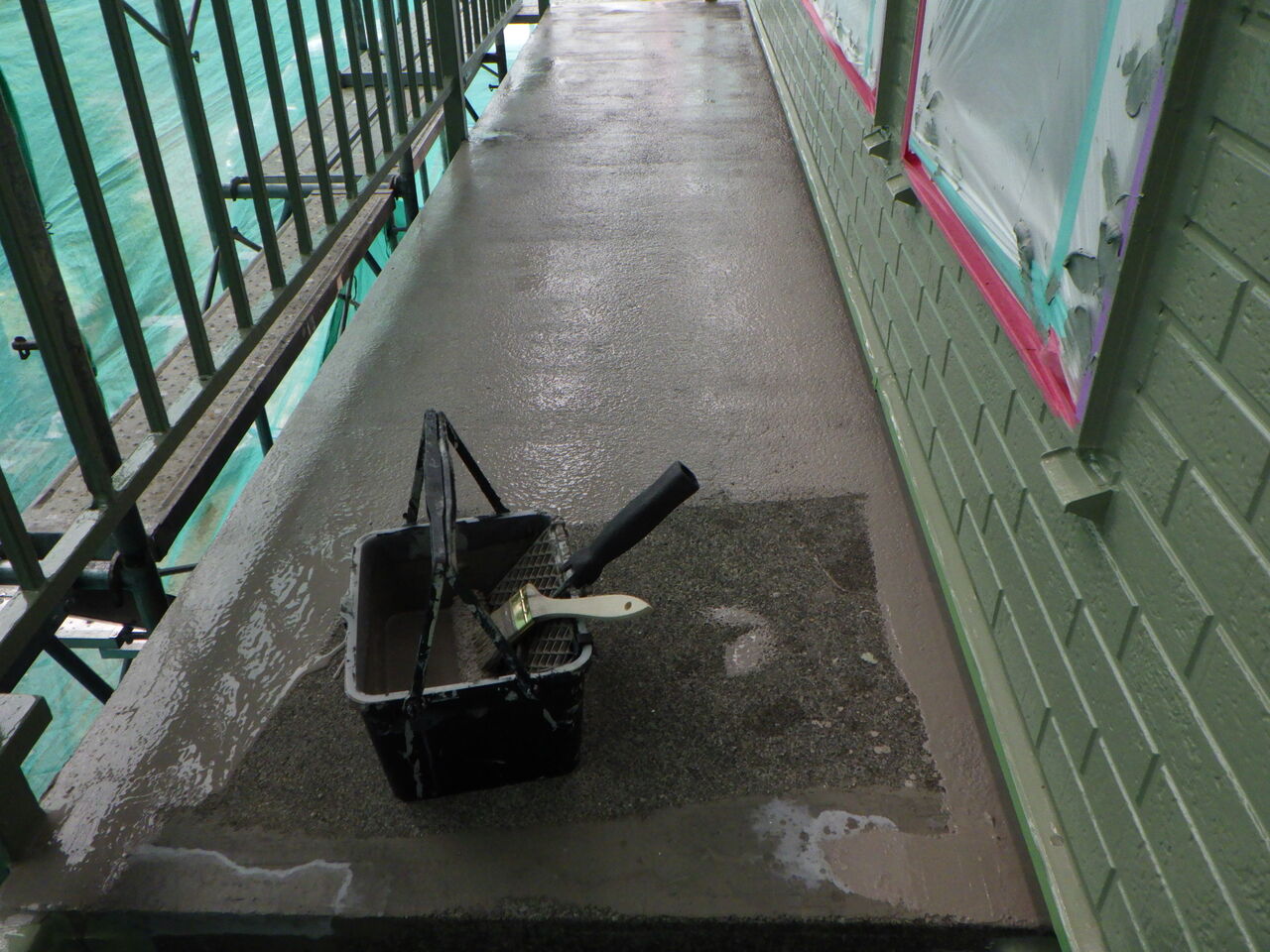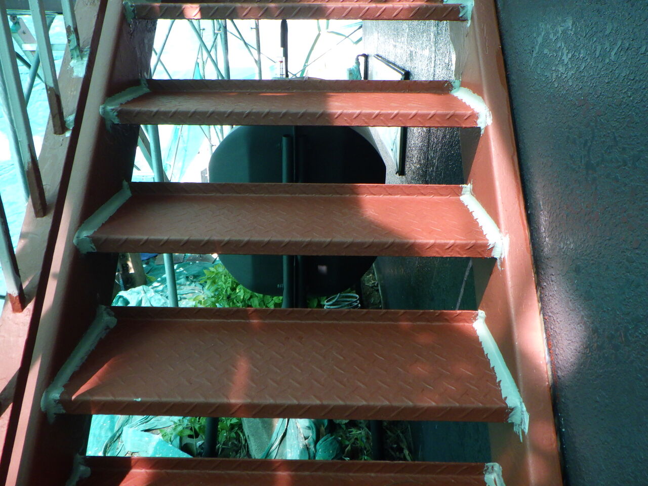 赤錆色錆止め塗装と階段端末のシーリング。