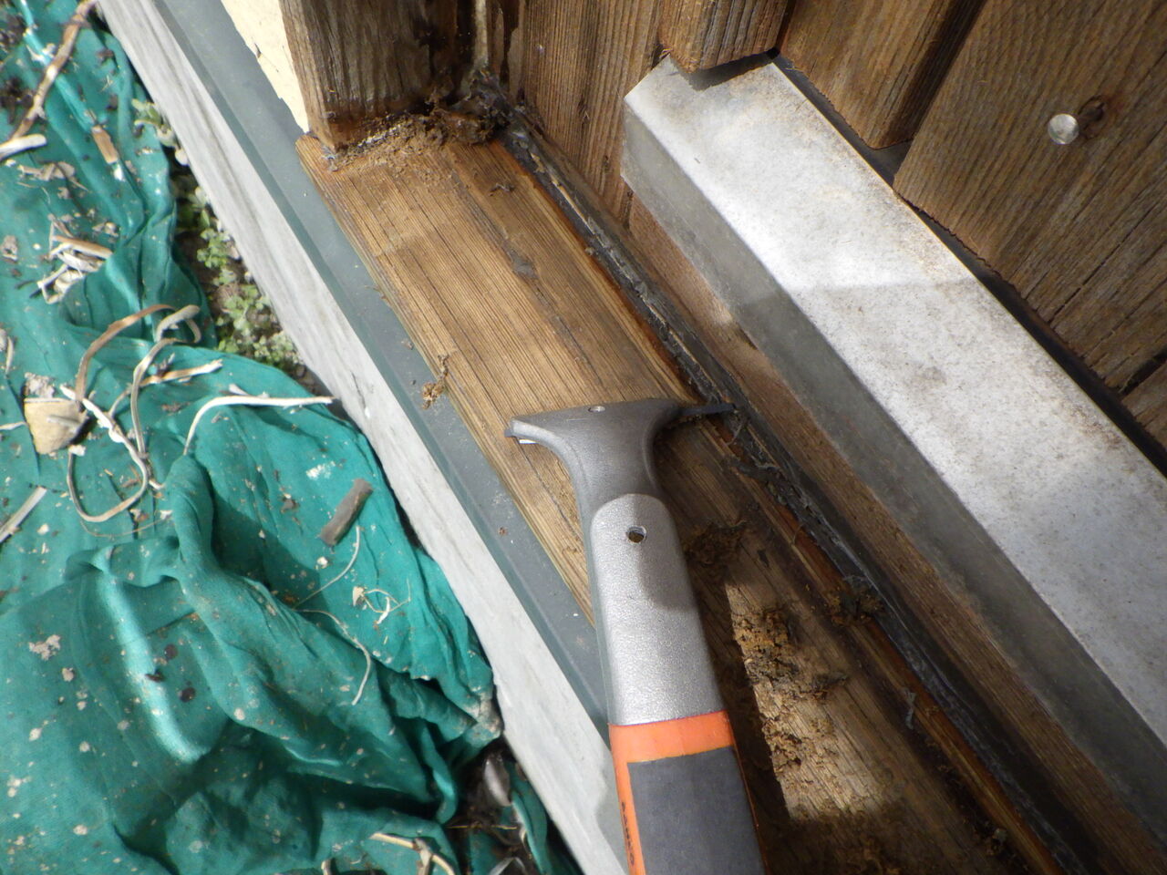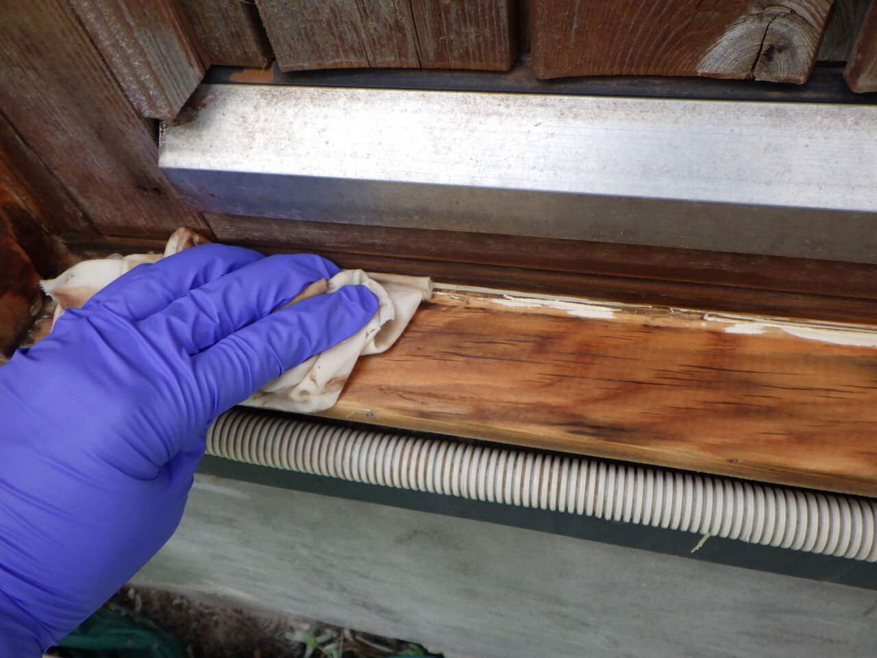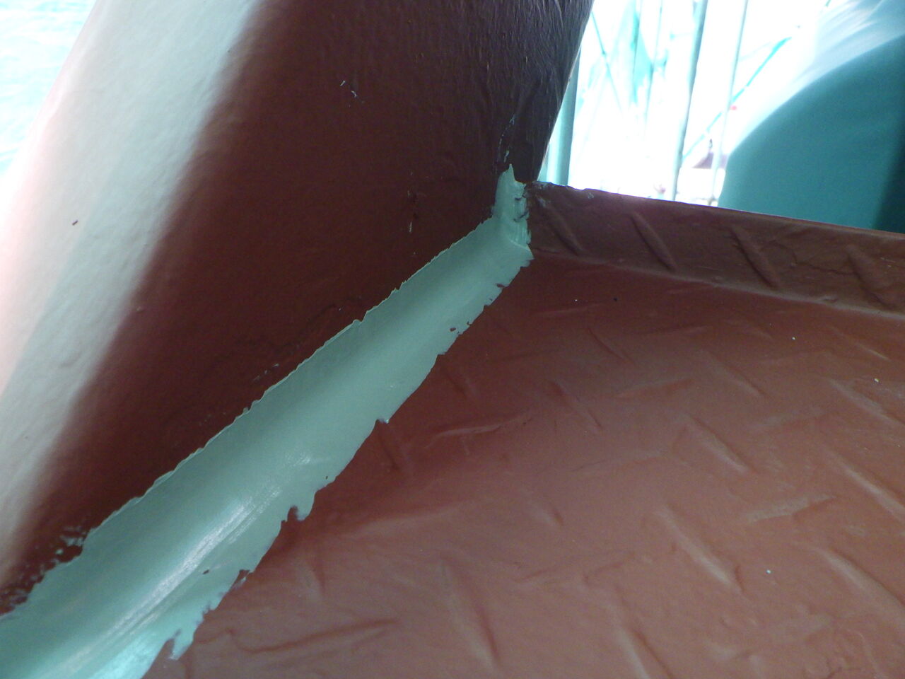赤錆色錆止め塗装と階段端末のシーリング。