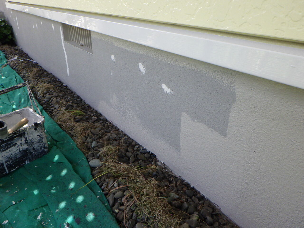 吹き付けパターン後の肌違いをぼかすために微弾性フィラーを塗装。
