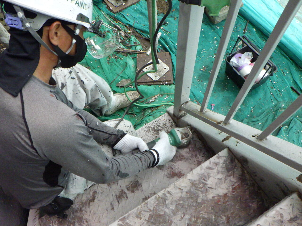 鉄骨階段はかなりサビていたので電動工具でサビを除去します。