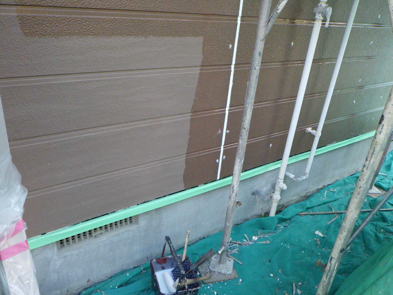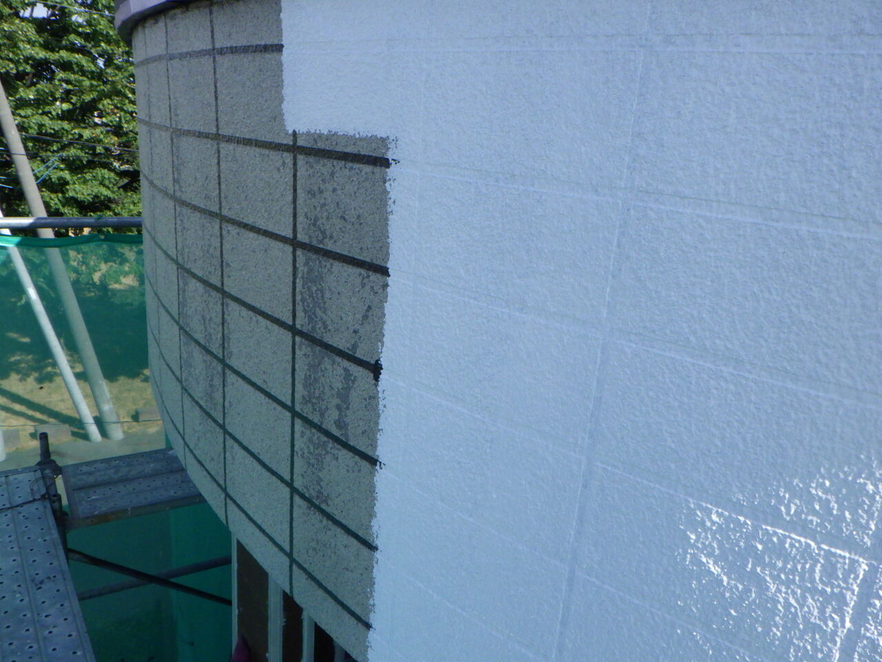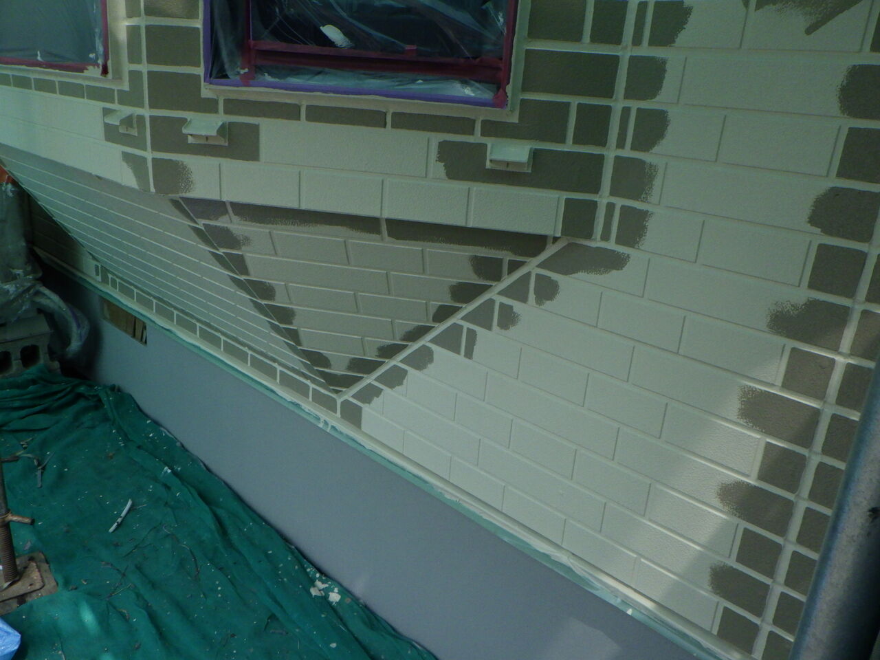 シーラー塗装後に一度凹部やひび割れの補修は行っていますが