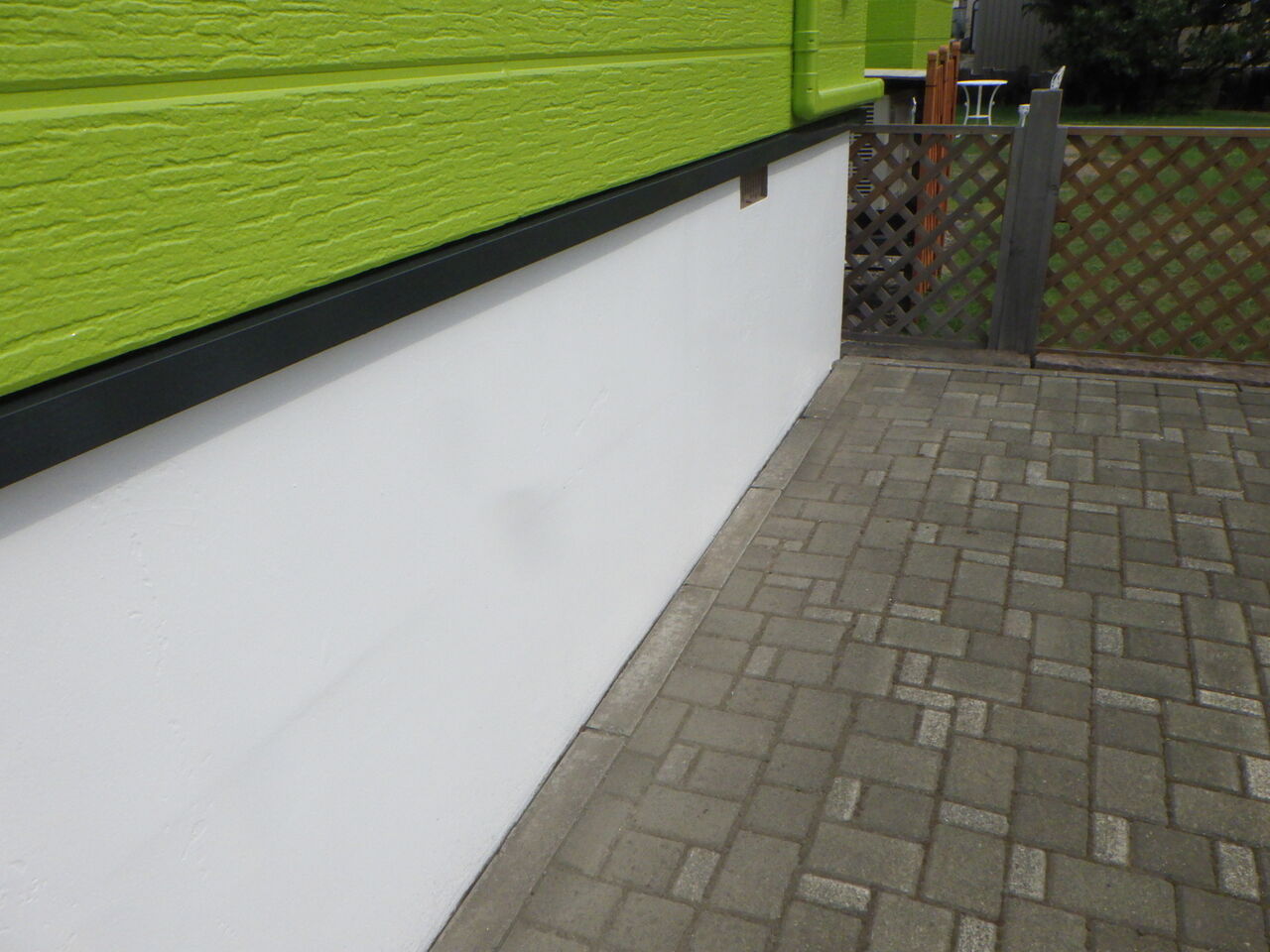 雨跡から見てもこの基礎垂直面は大量の雨水が流れ落ちるようです。