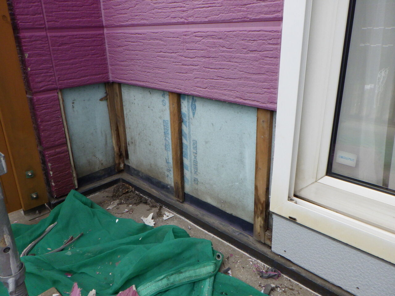 モルタル養生期間を10日位あけた間に何度か雨が降りました。