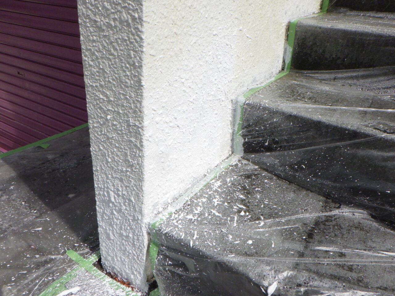 基礎鉄筋爆裂箇所を樹脂モルタルで補修しました。