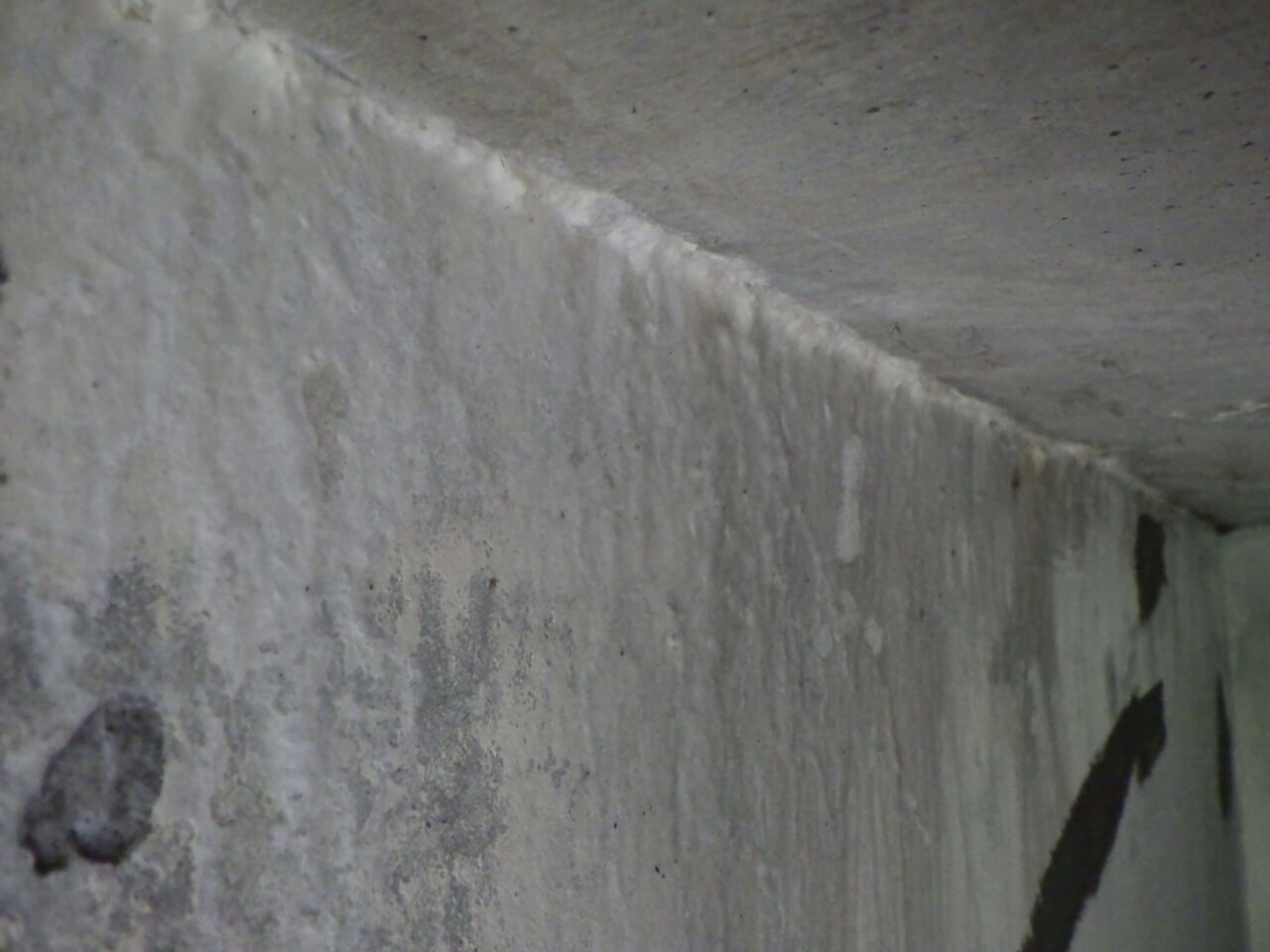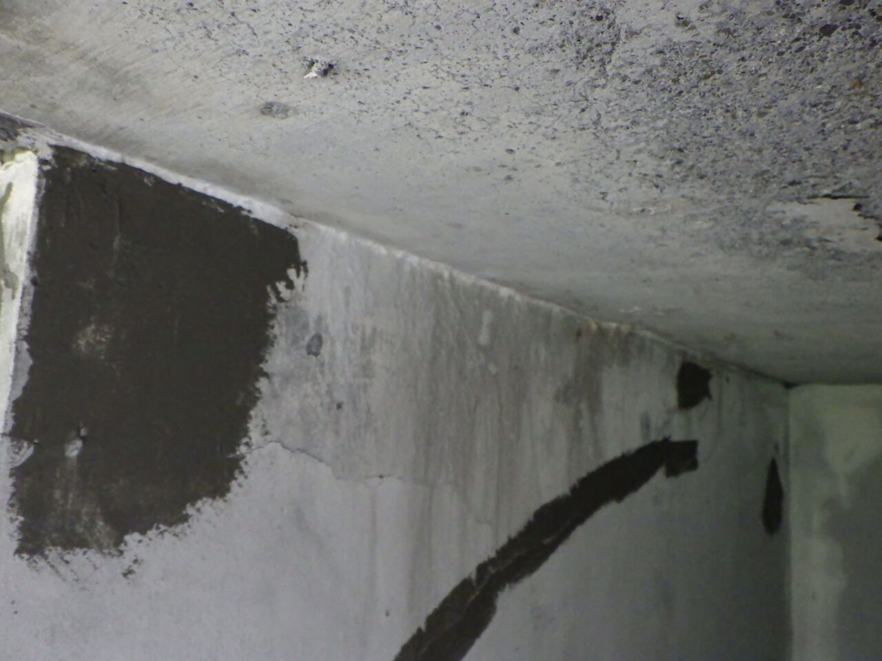 降雨のたびに土間モルタル内に浸水を繰り返していたことが想像できます。