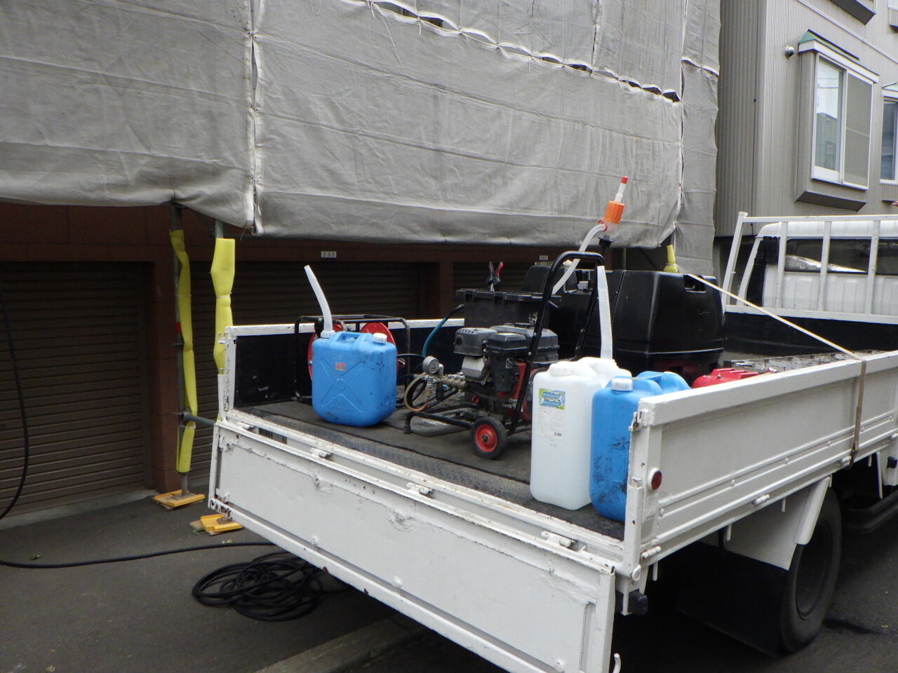グリーンペイントでは大型の給水タンクとポリタンクを併用して