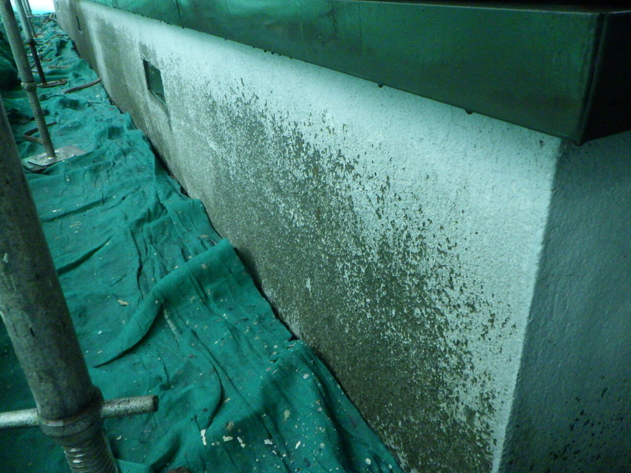 基礎の既存塗膜も密着性が低下し簡単に剥離する状況でした。