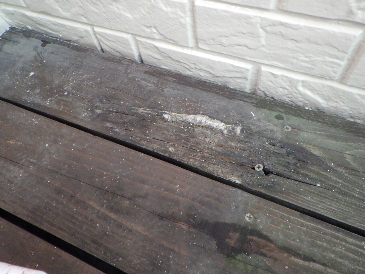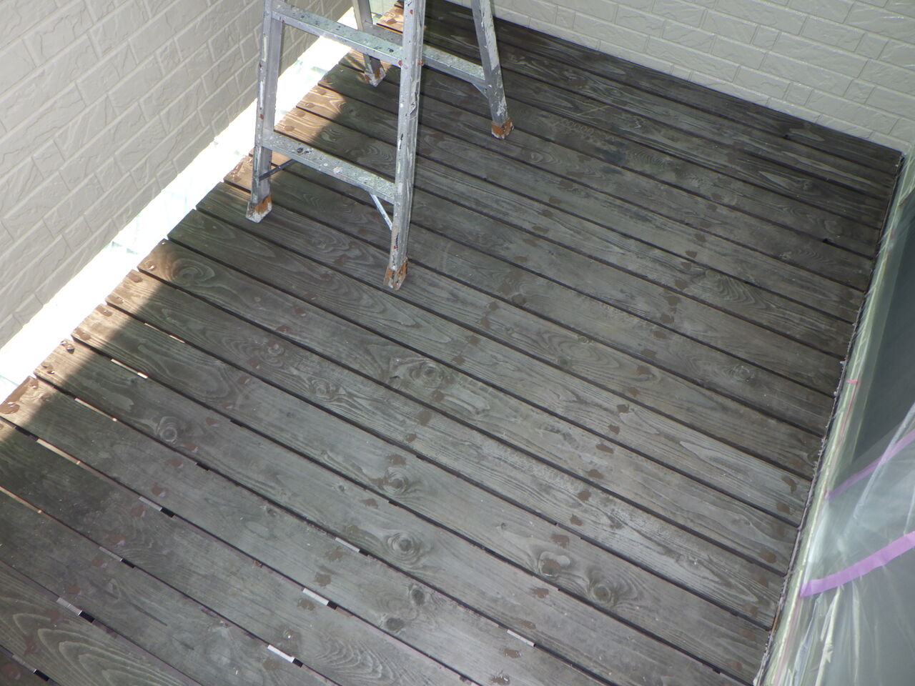 バルコニーウッドデッキの劣化箇所。