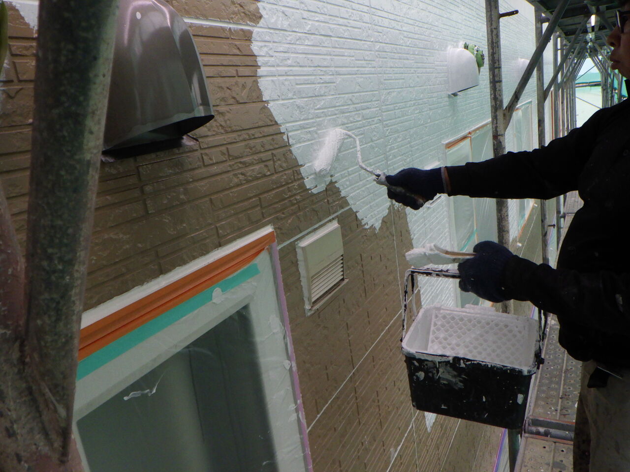 篠路住宅は金属サイディングなので、下塗りにはサビ止め効果もある