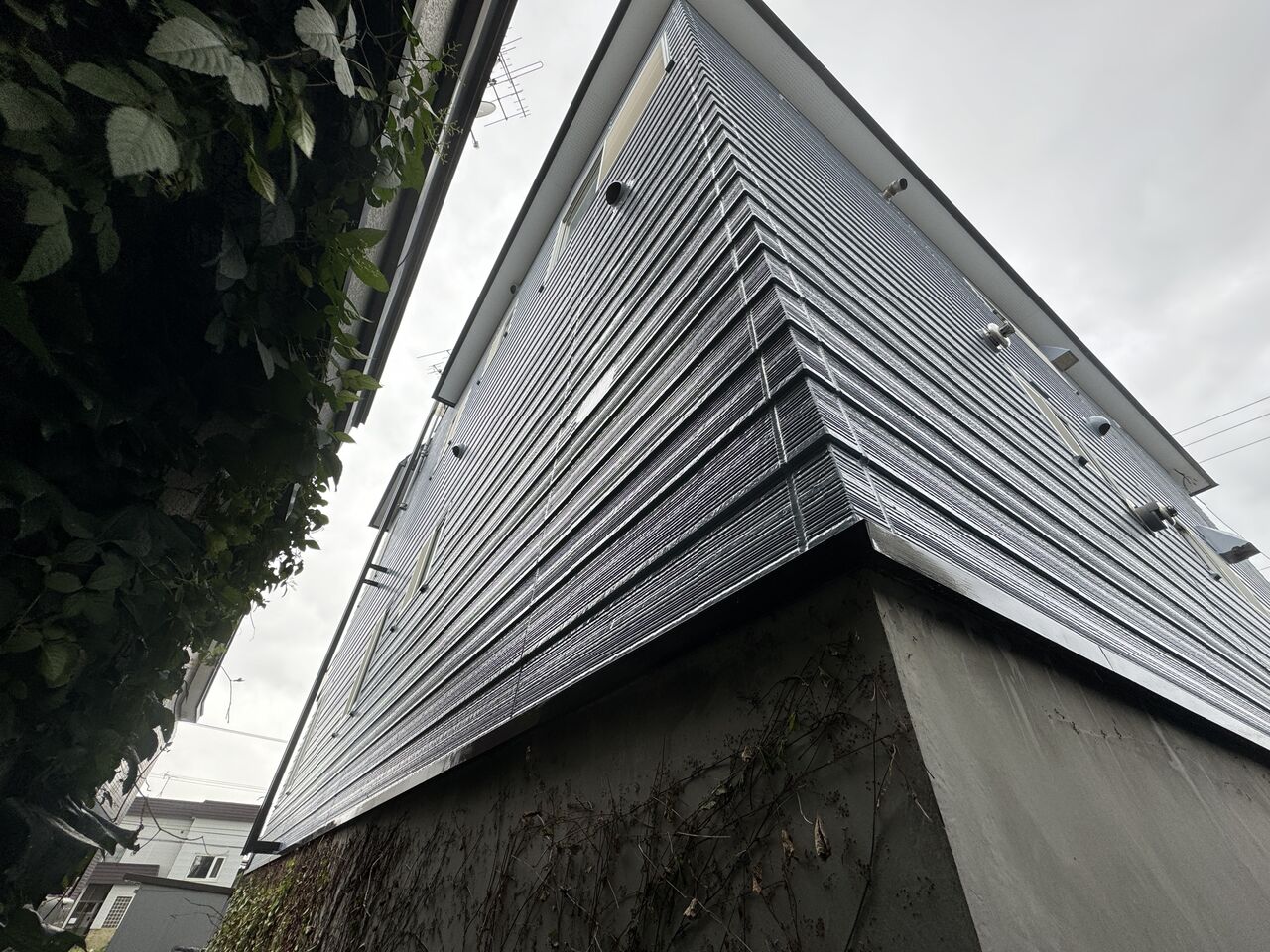外壁は2色で構成されたガルバリウム鋼板ですが、シルバーのような淡色の