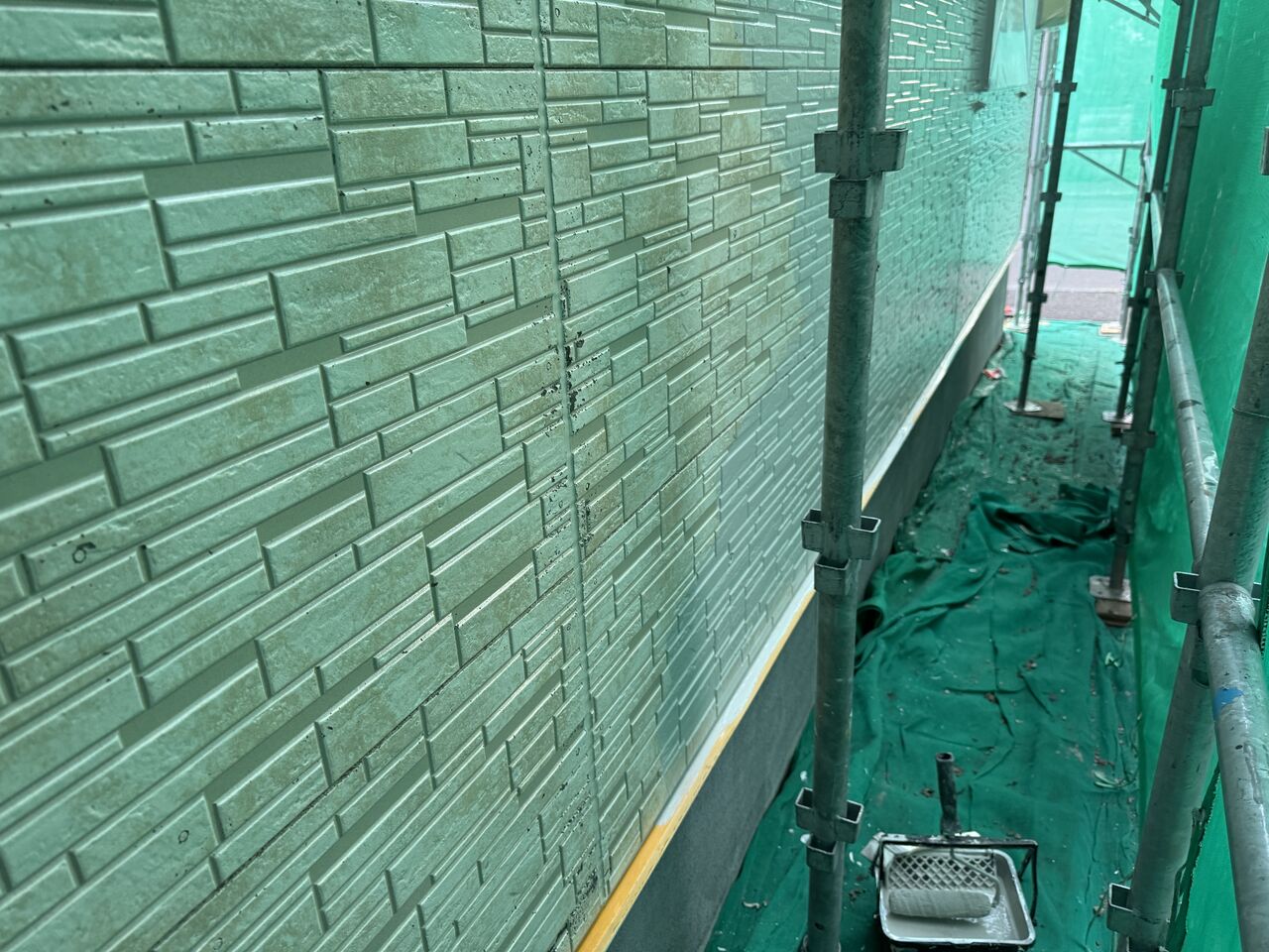 グリーンペイントでは水性撥水型シリコン艶消し塗料で、モルタル色に似せた