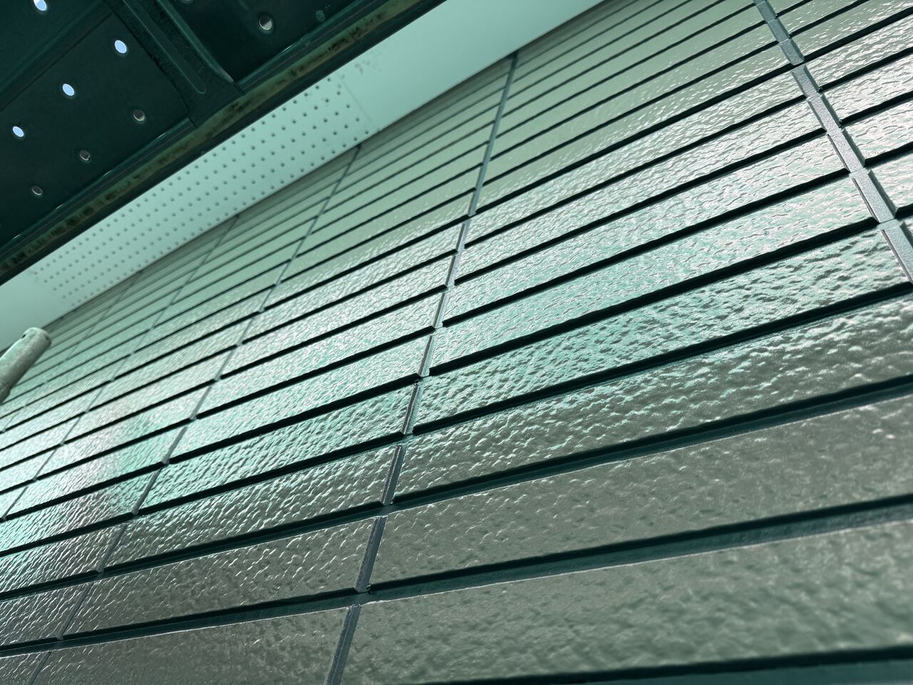 南西面は直射日光が強いのでここまで艶は残っていませんが、壁面全体的に見て