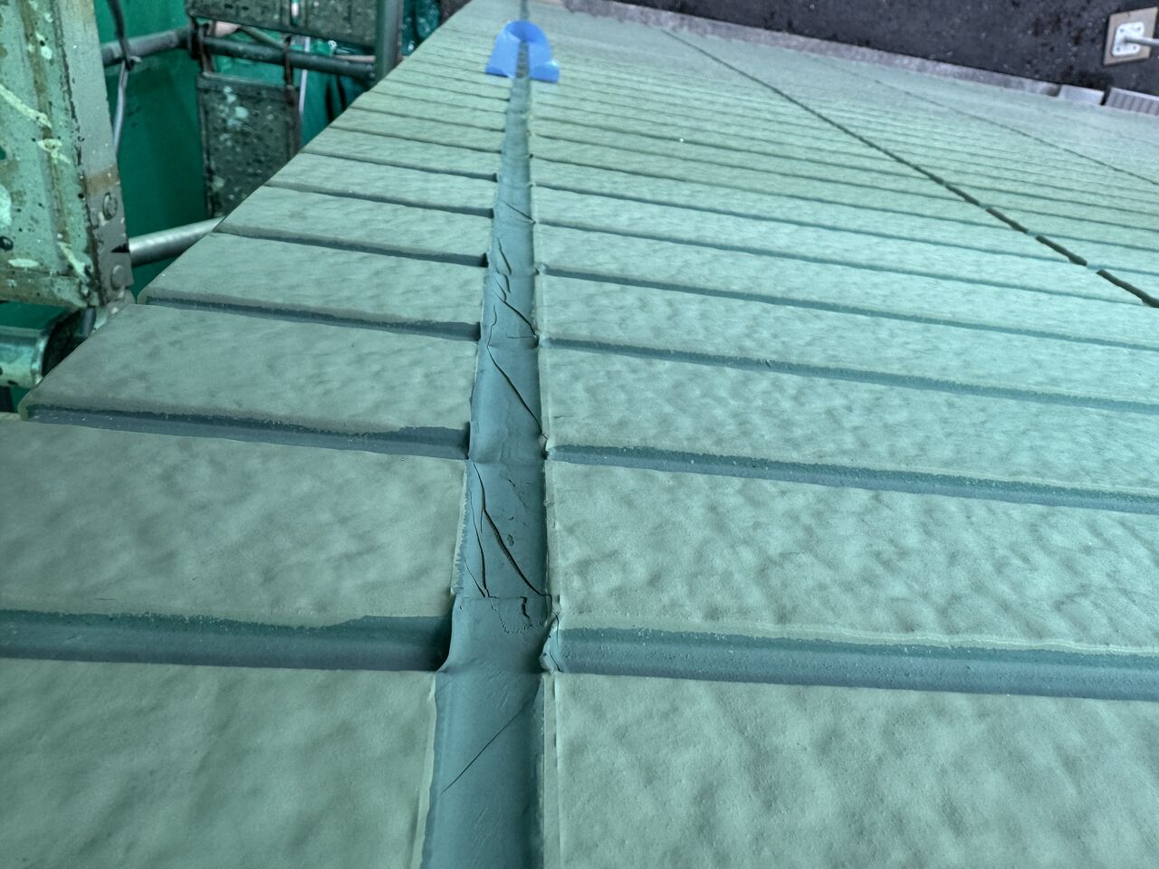 この割れはシーリングの断裂ではなく、シーリングの柔軟性に塗膜が追従しきれず