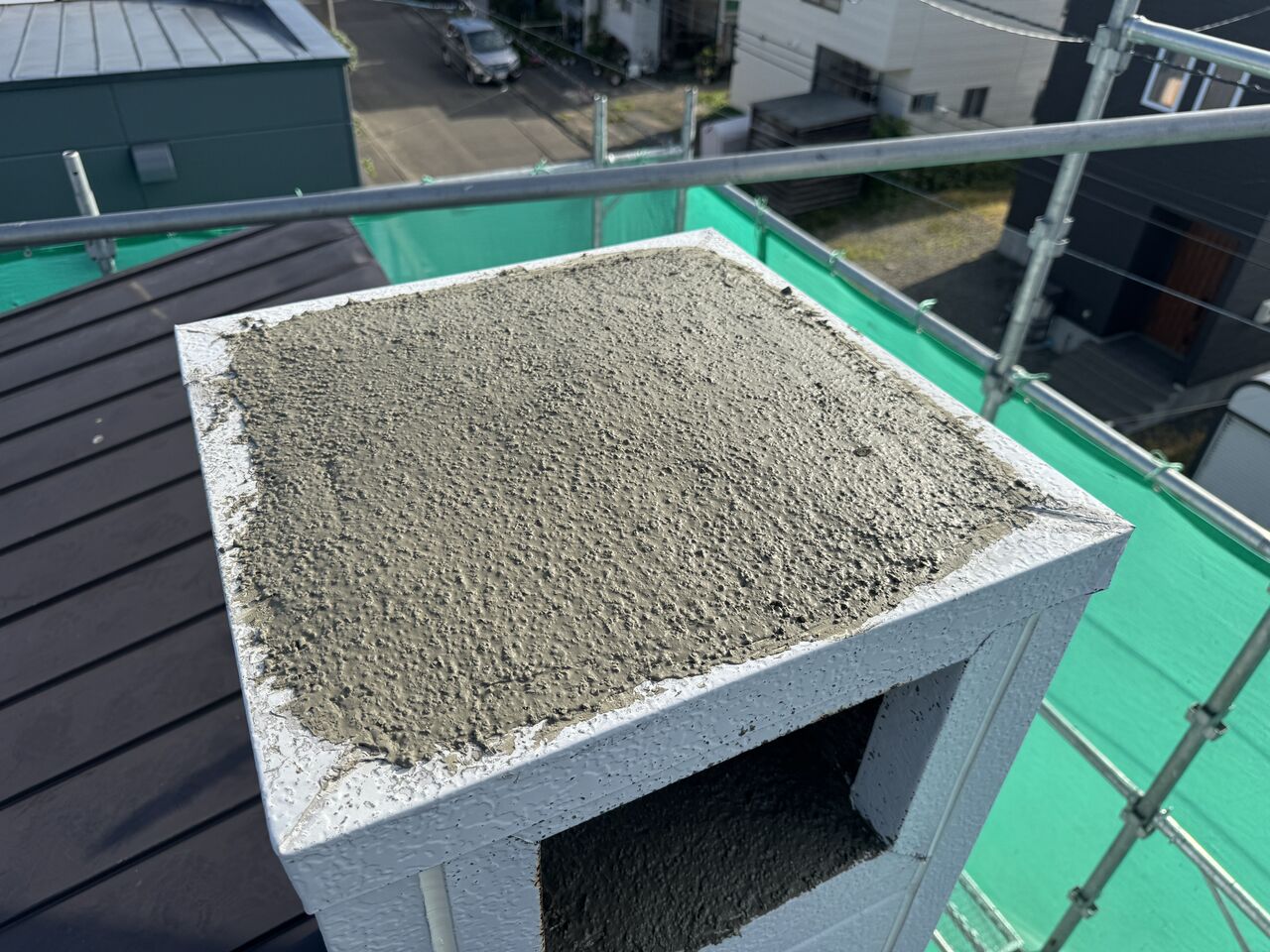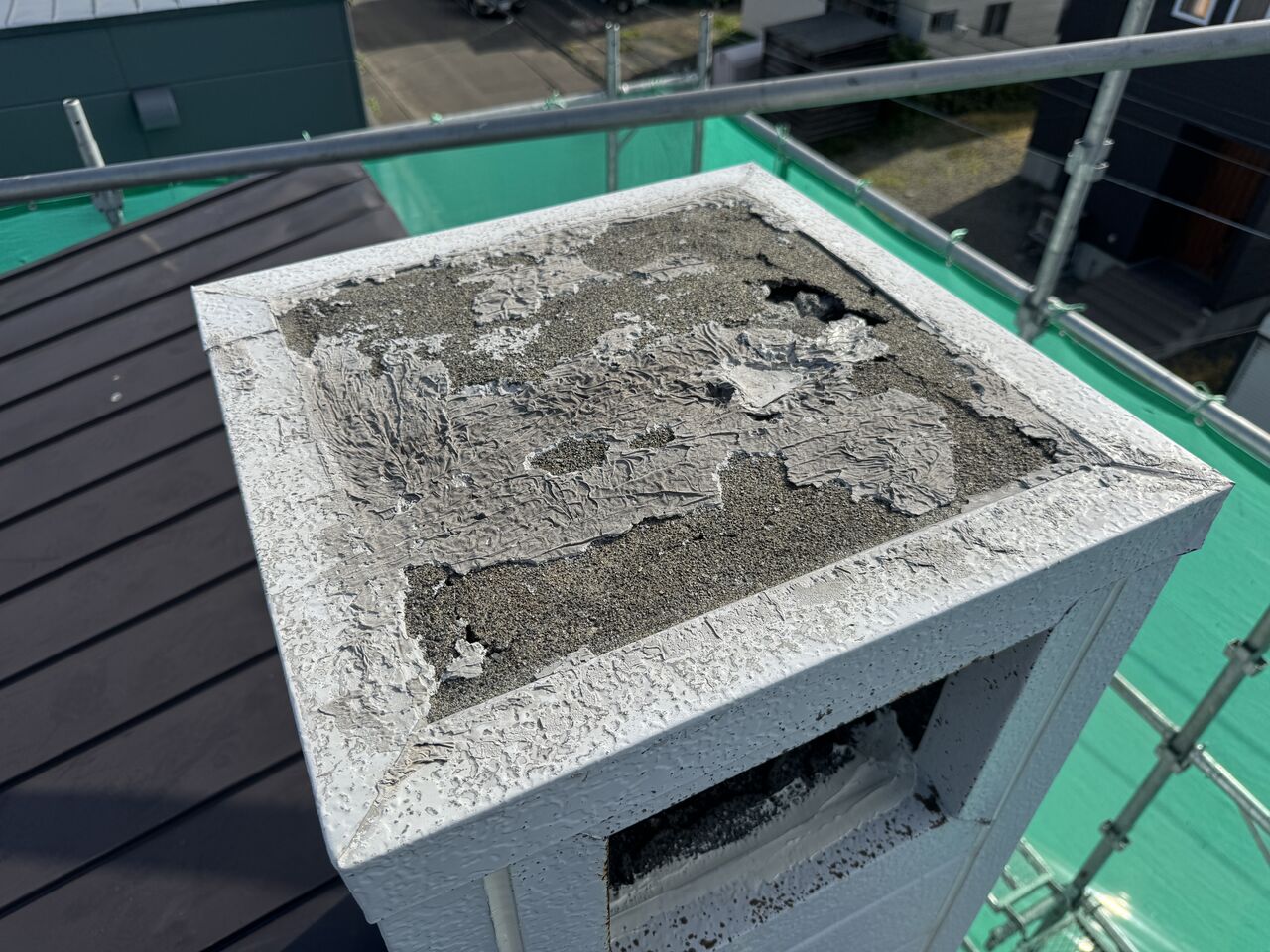 煙突はモルタルにスチールサイディングをかぶせてあるのですが、天場と