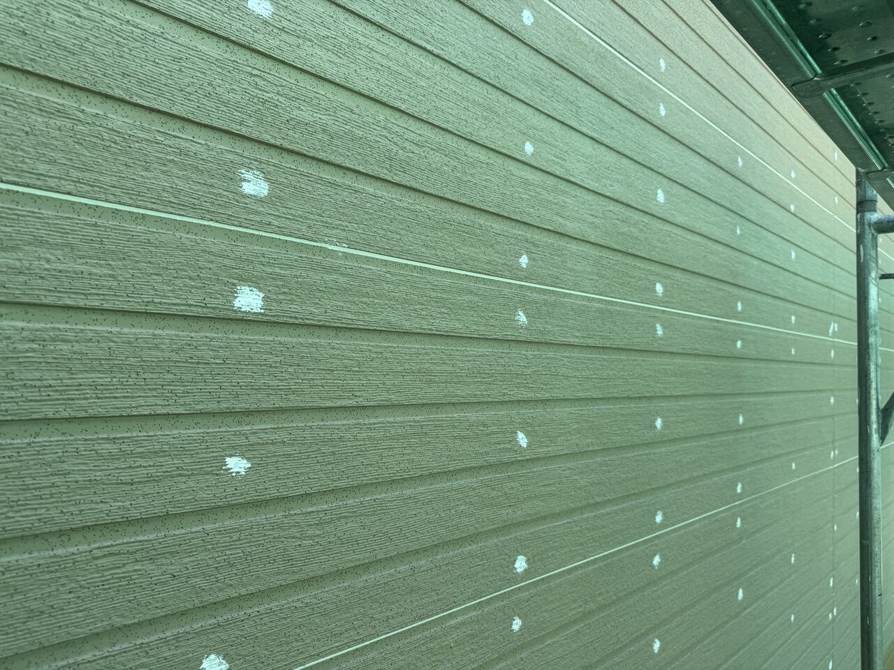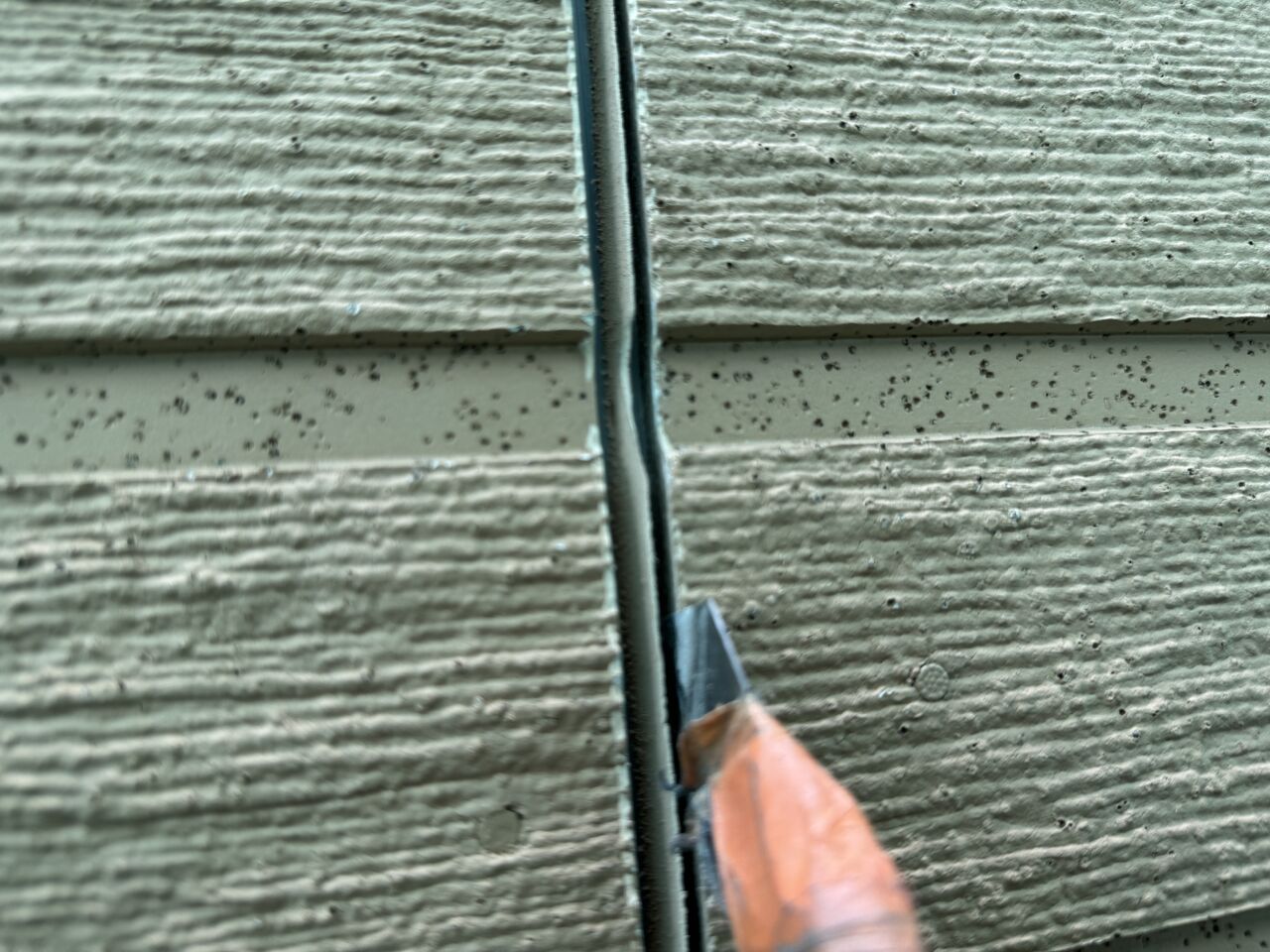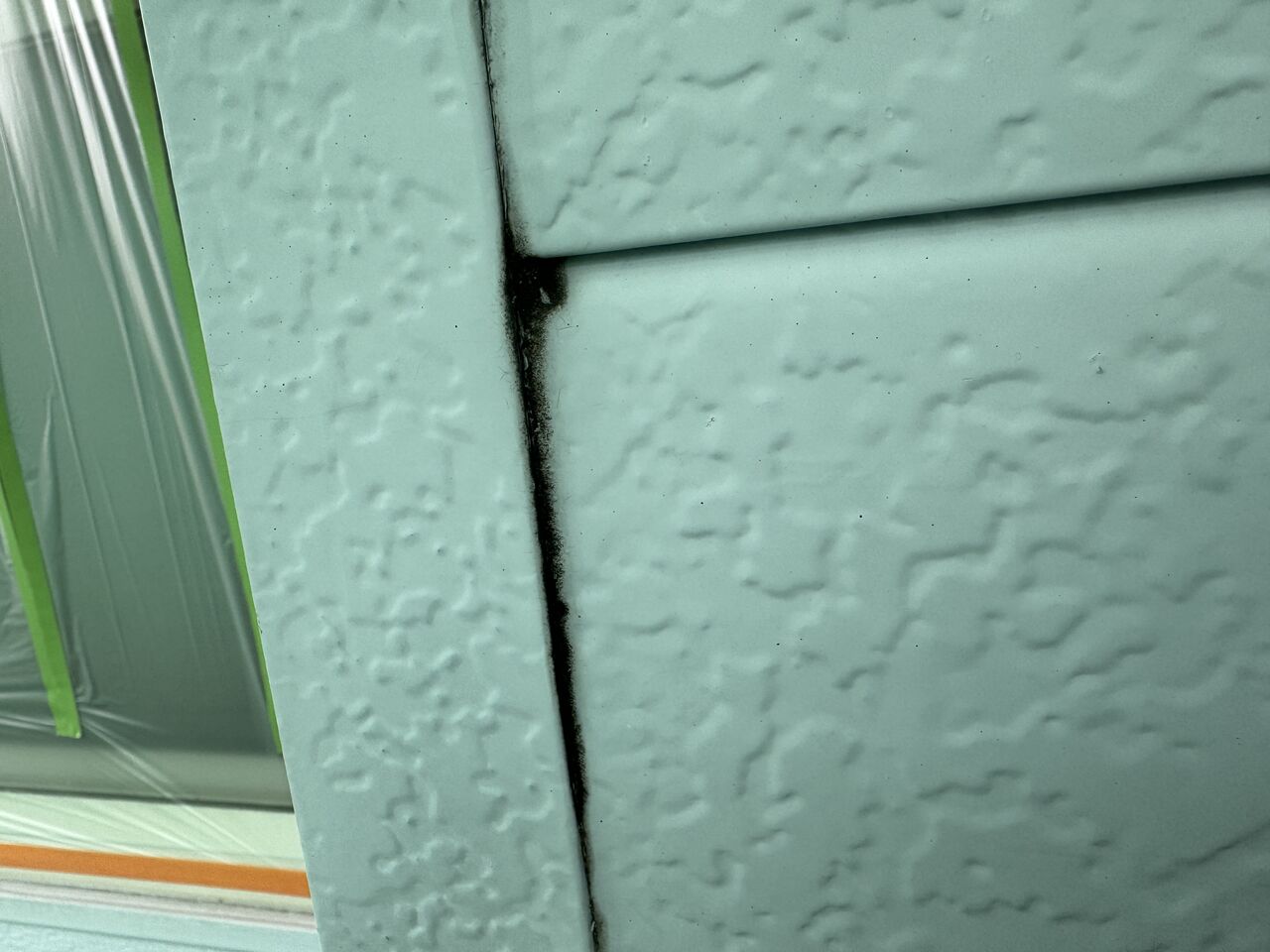 この年代のスチールサイディングでは、シーリングにシリコンシーリングが