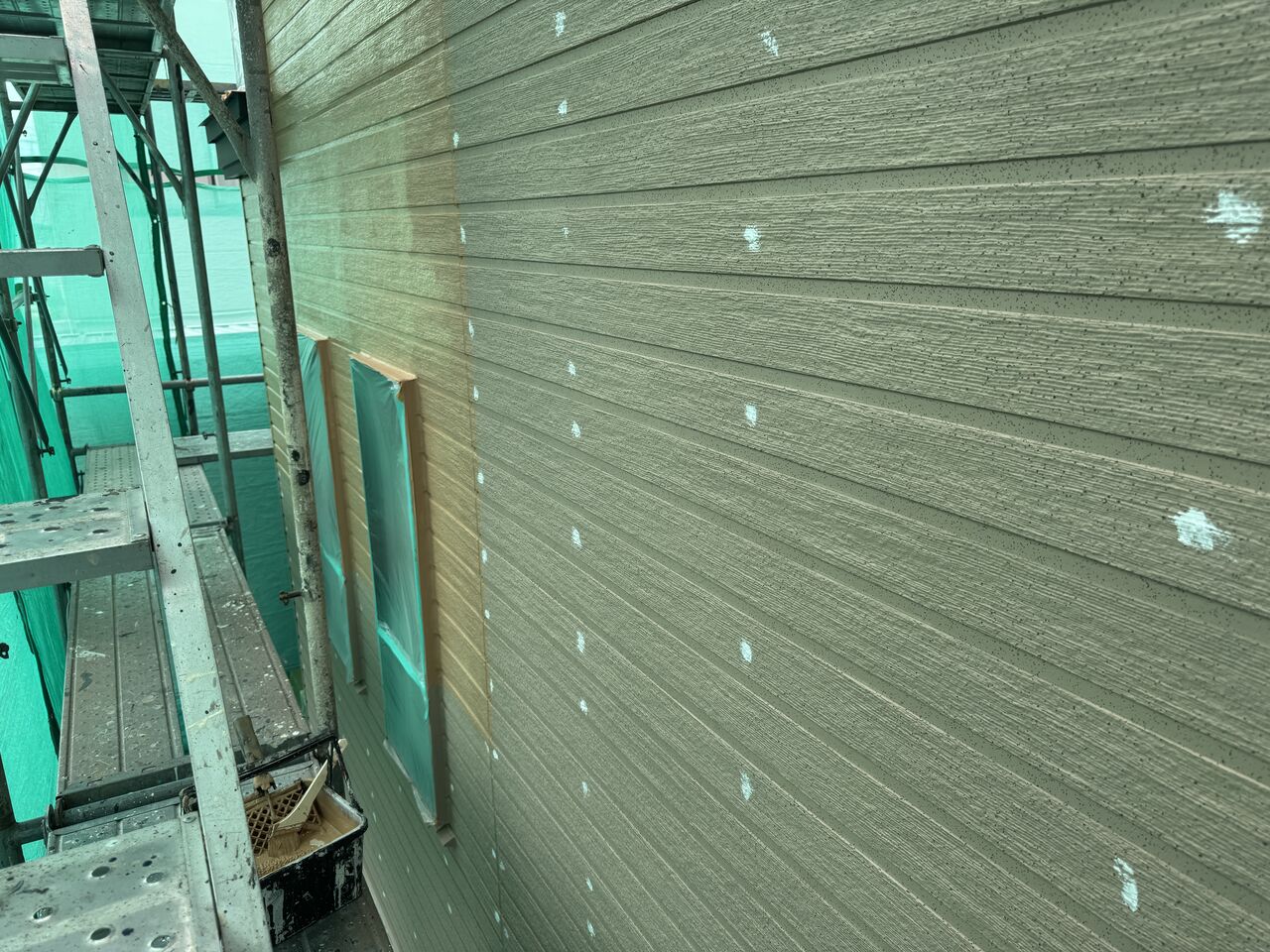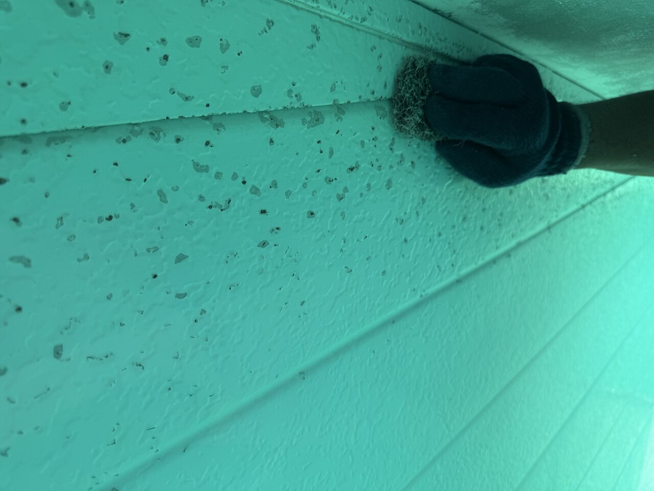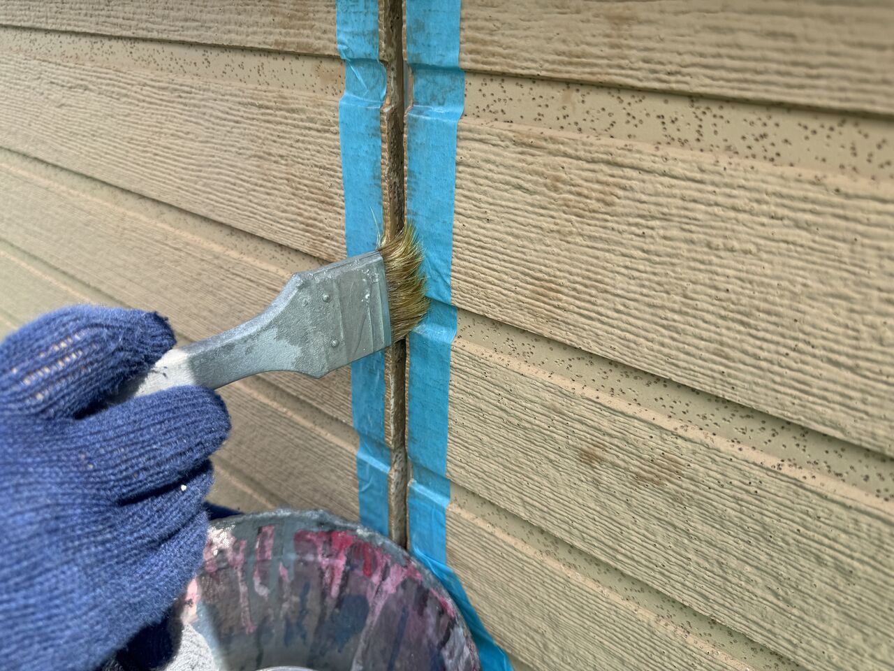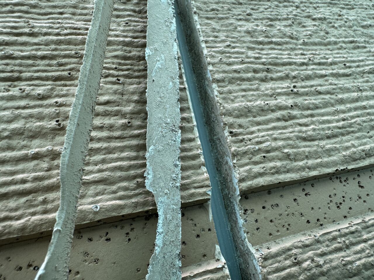 この年代のスチールサイディングでは、シーリングにシリコンシーリングが