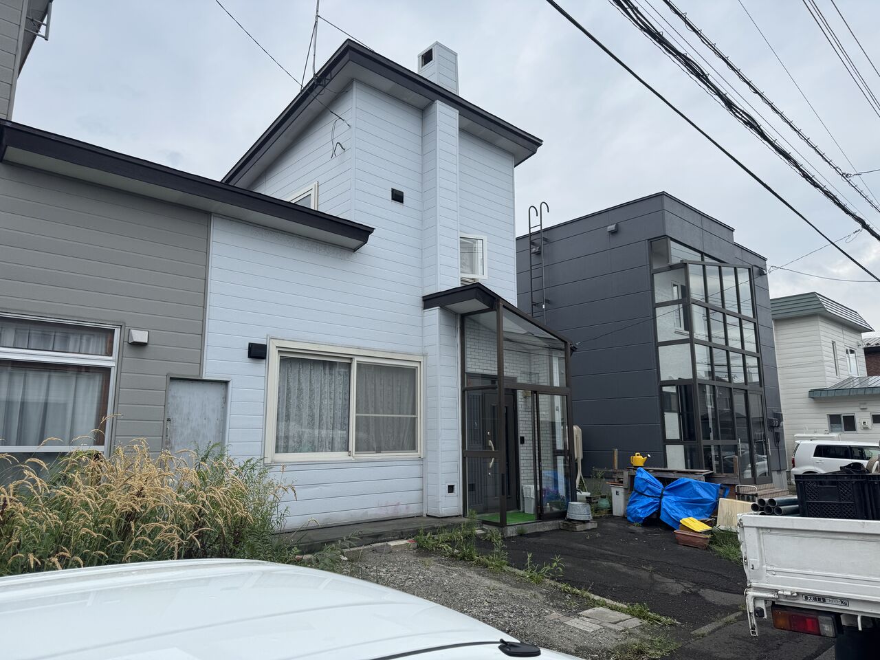 屯田住宅は築年数から見て新築時はモルタル壁で、その後にスチールサイディングを
