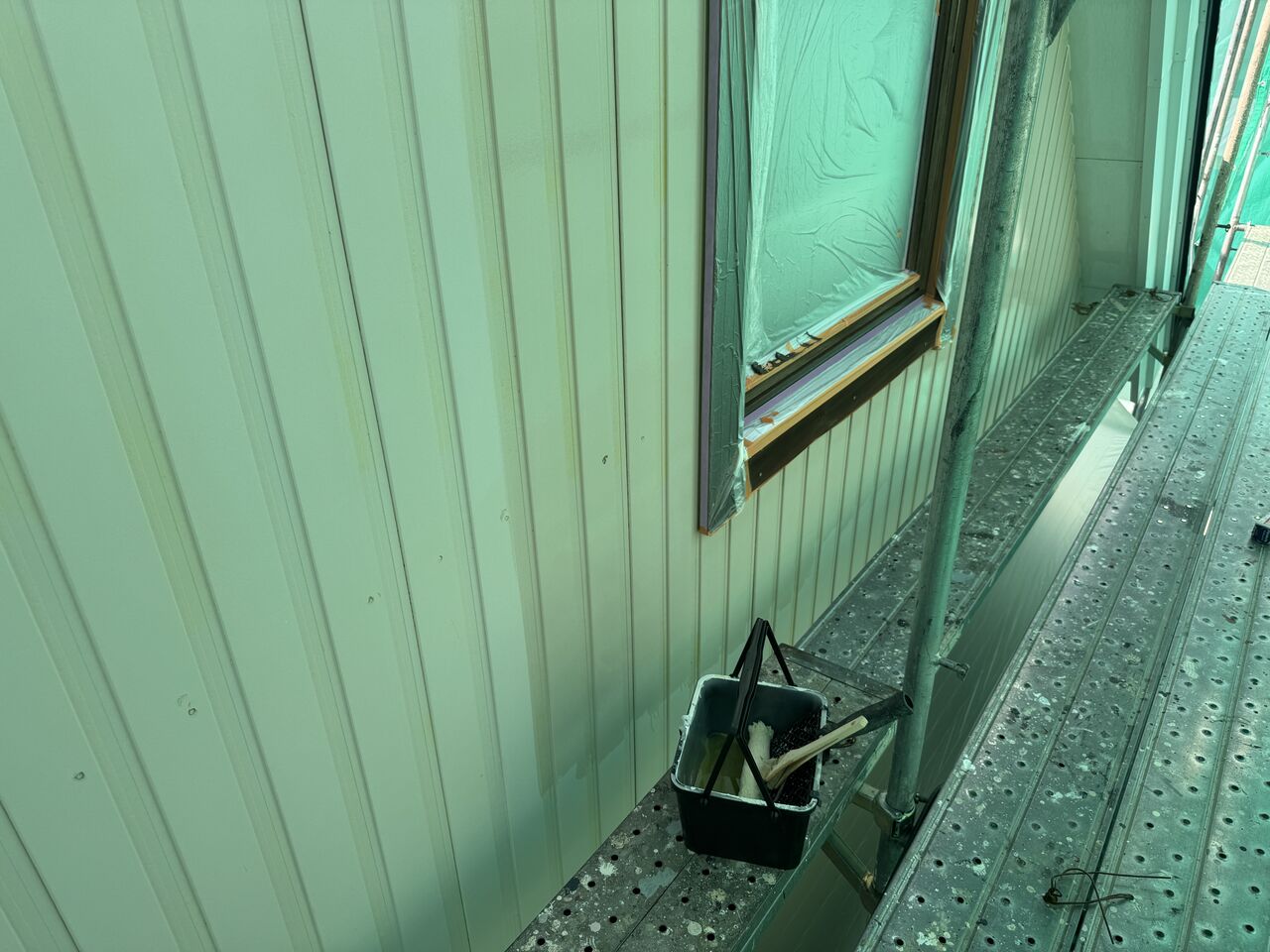 篠路住宅は含侵型木部塗料を使用しているので、同じく含侵型を塗装します。