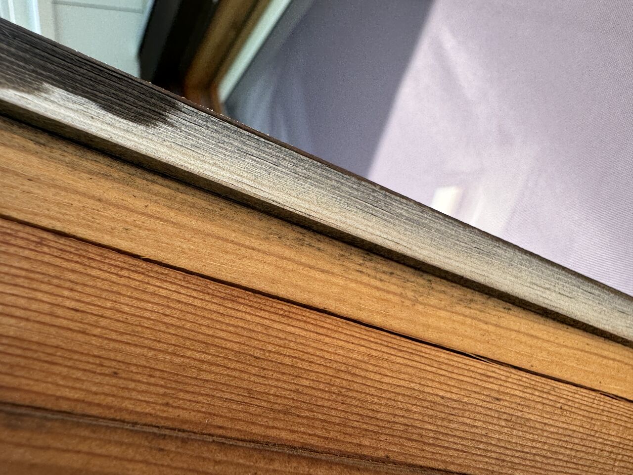 この1㎝ぐらいの白くなっている部位は、窓枠の外側に面する個所でもあり