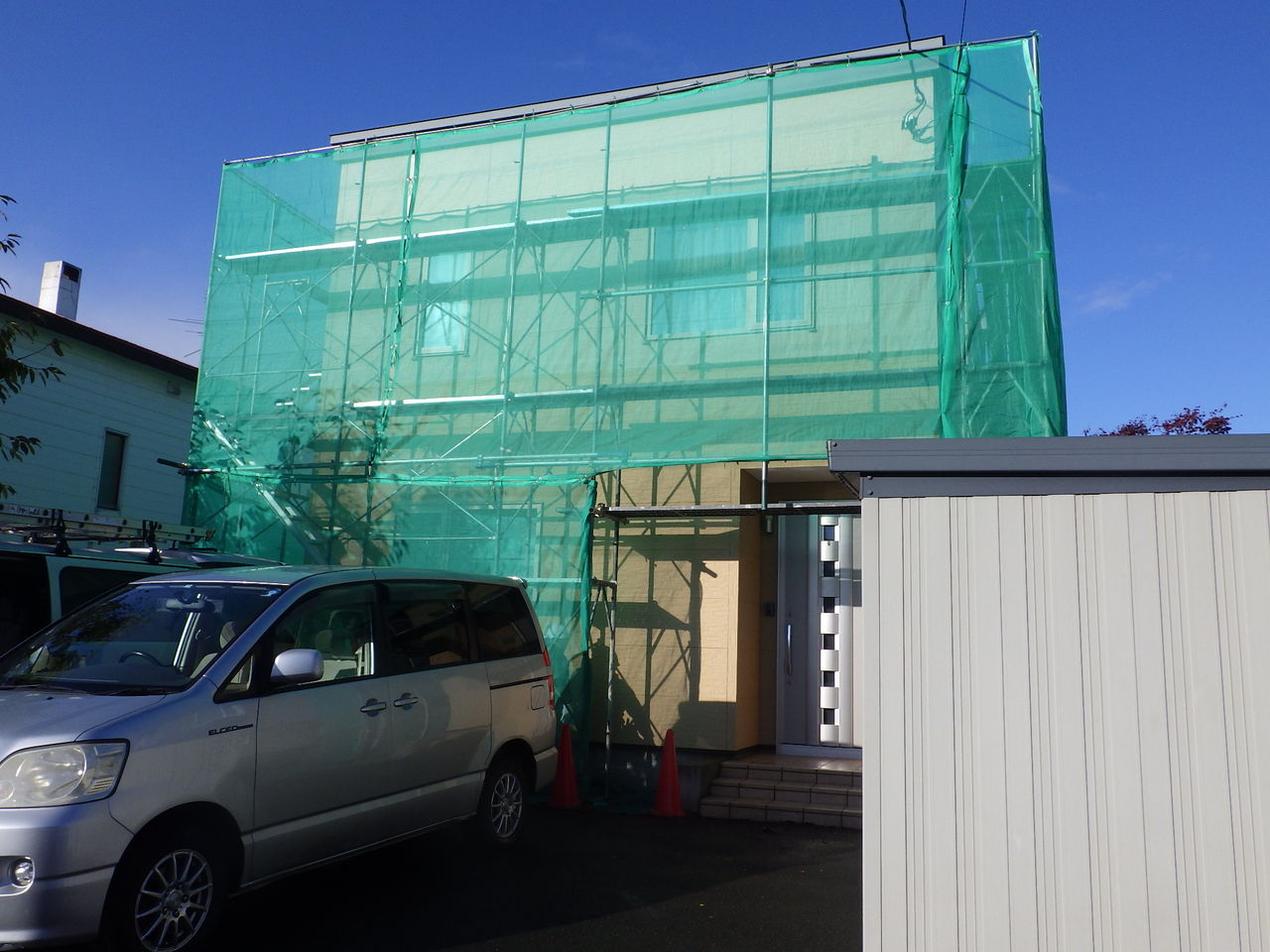 さらに向かって左隣の住宅で、ほぼ同時期に塗替え工事を始めますとの