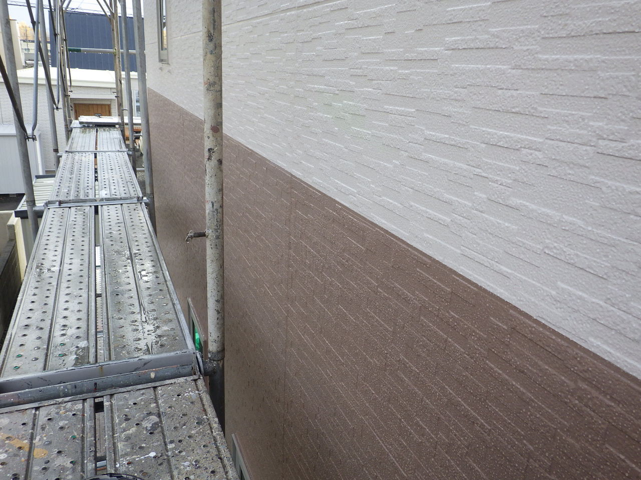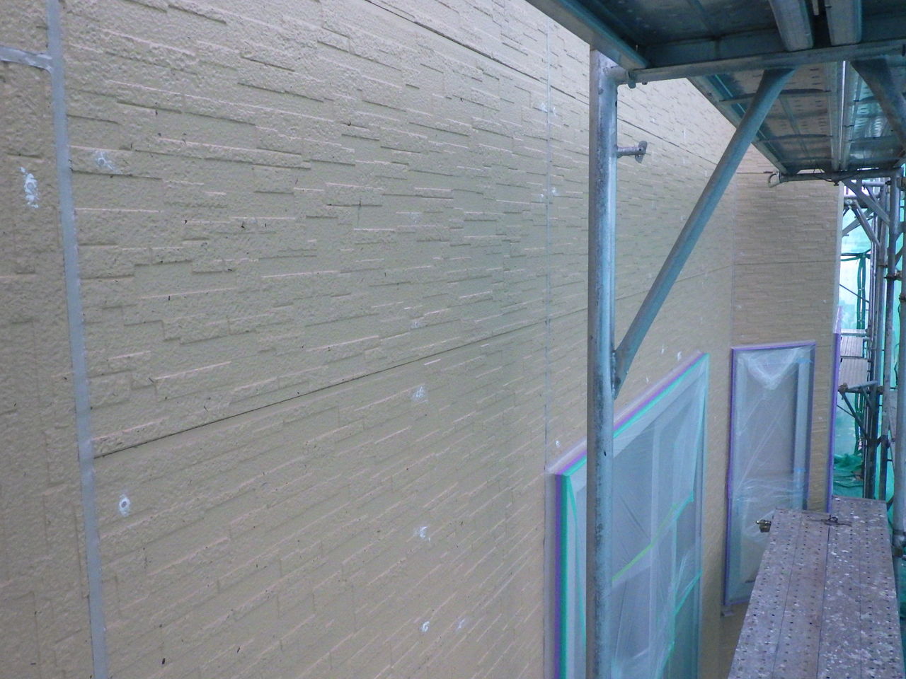 壁面すれすれの足場仮設となりました。