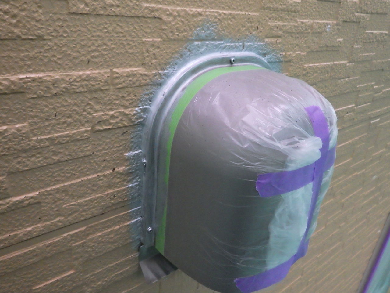 塗り作業の前に換気口や各所に施工されているシリコンシーリングの