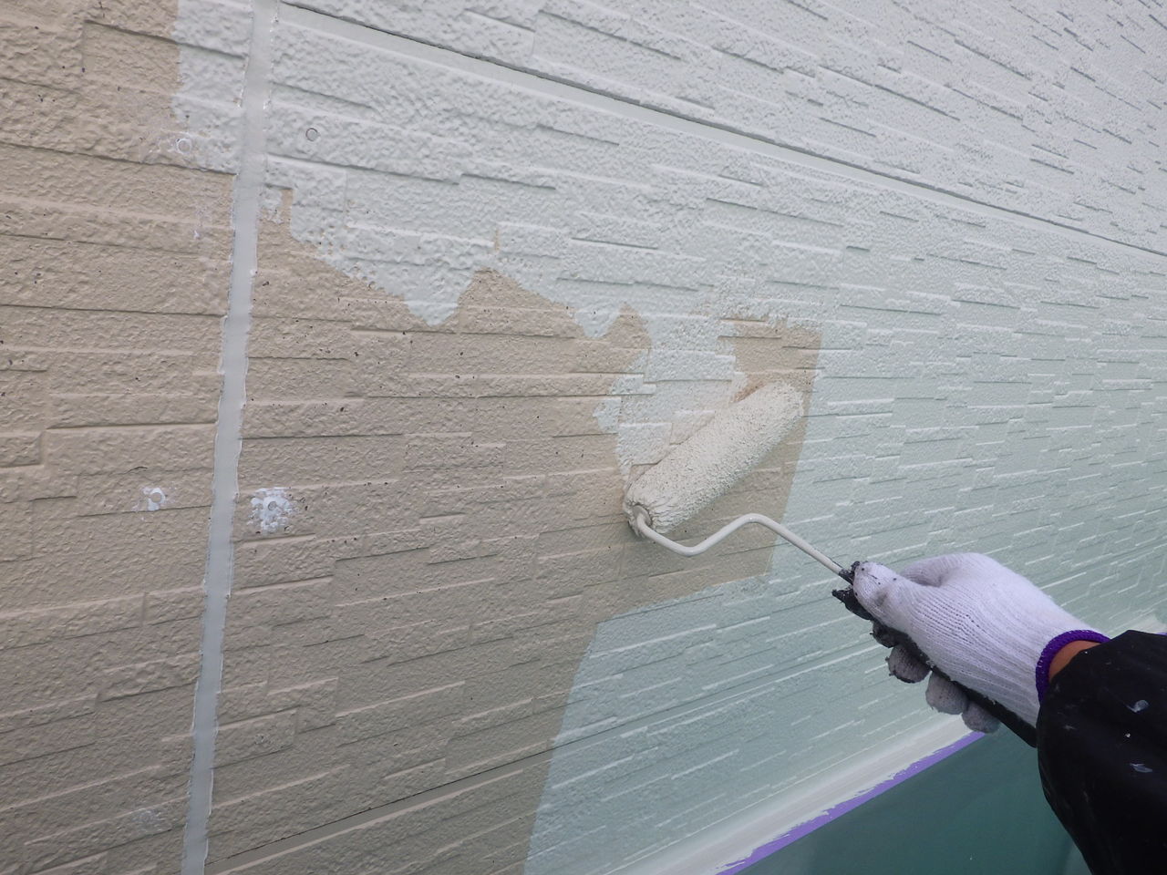 色違い水性シリコン中塗り→指定色水性シリコン上塗りで仕上げていきます。