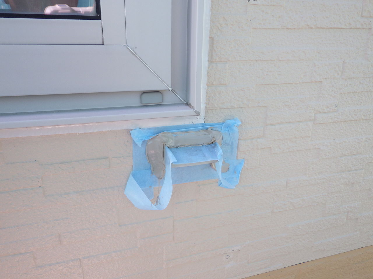 窓下水切りも復旧⇒上左右方向の3方シーリングで防水処理します。