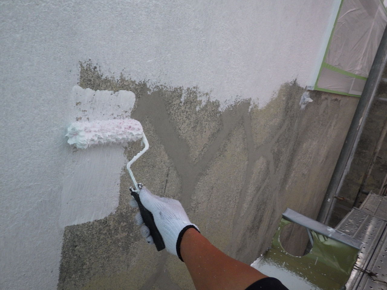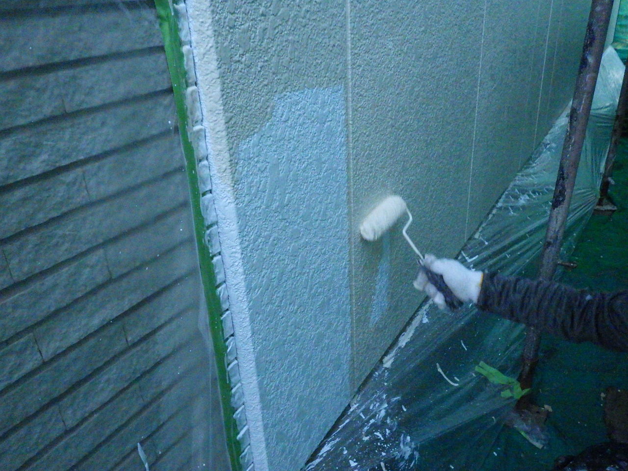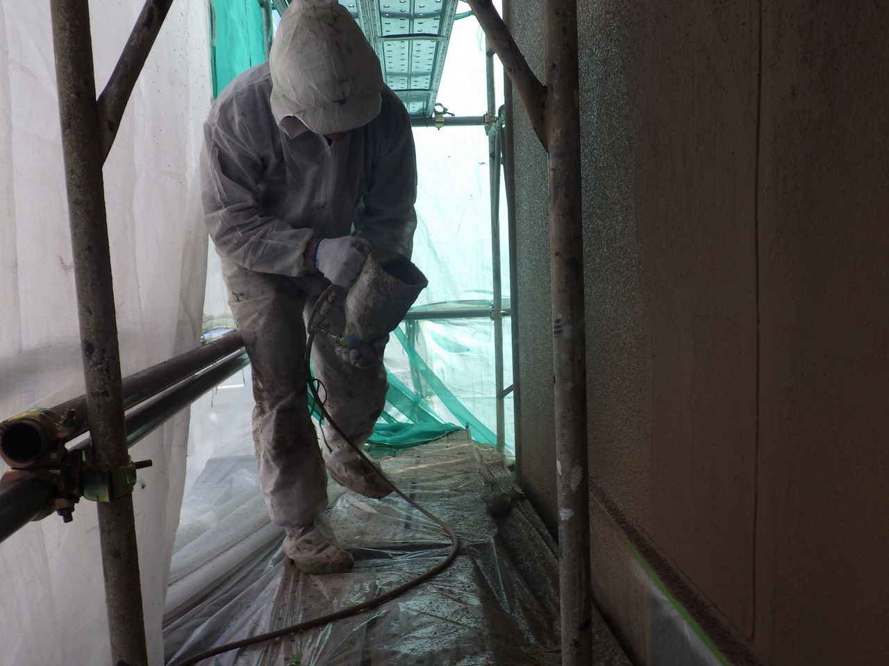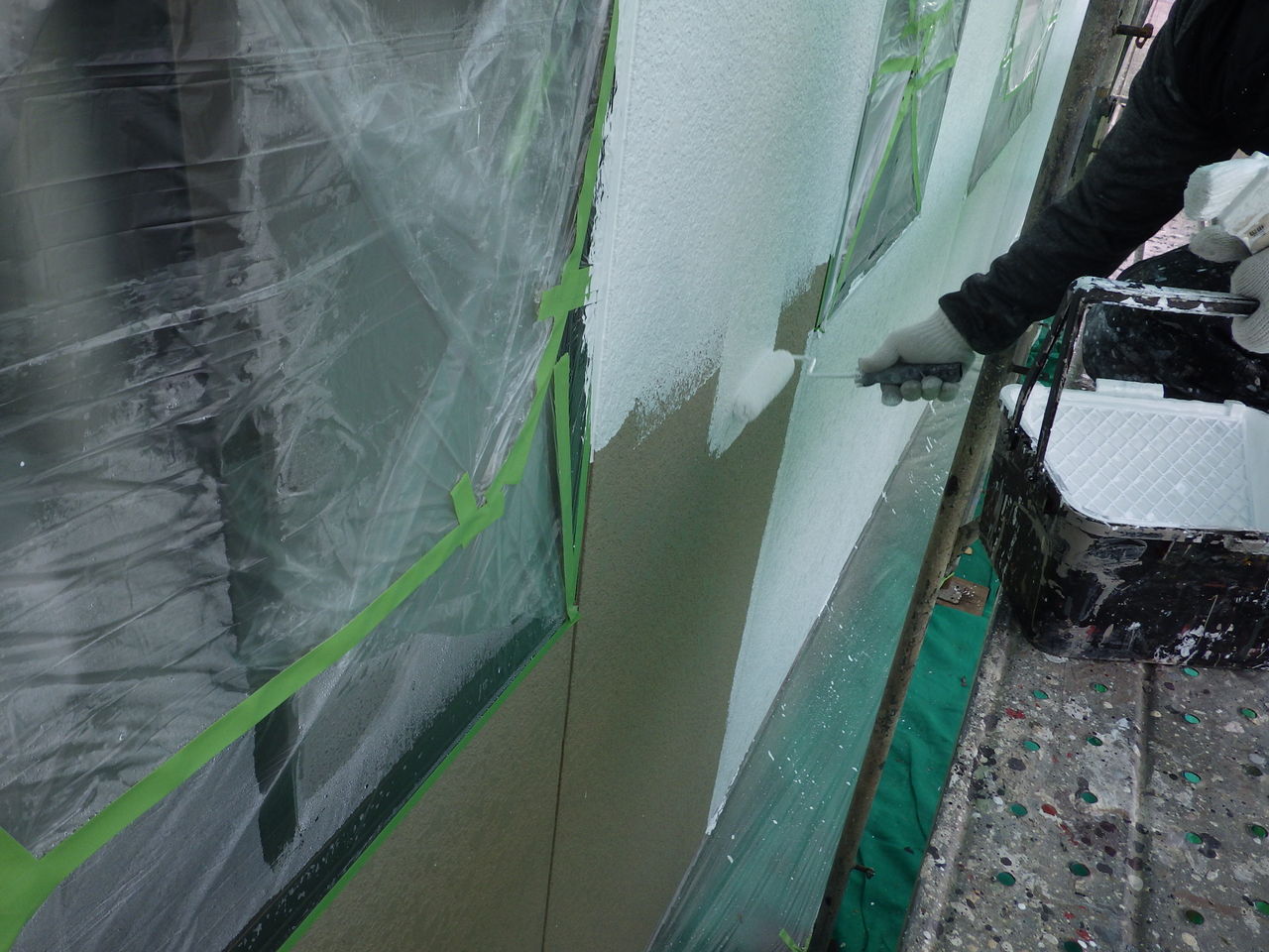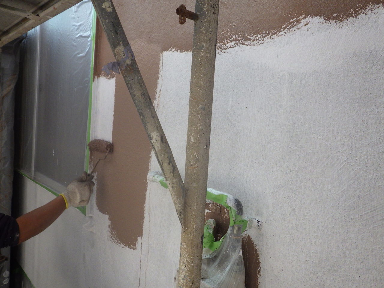 上塗りはお客様から指定されている色で塗装したのですが、北35条APの外装