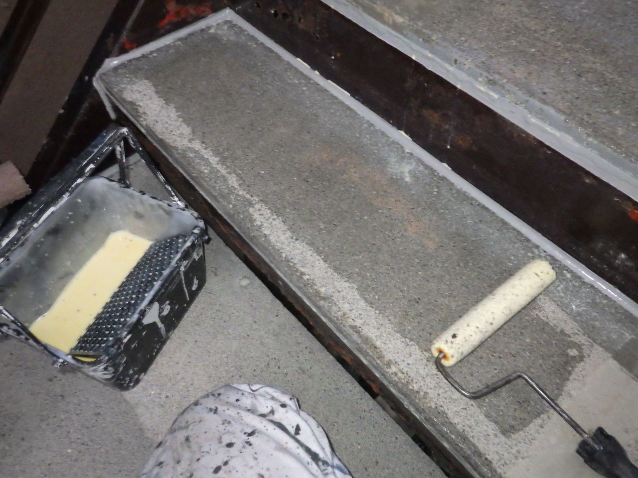 短毛と呼ばれる、毛の短いローラーで凸部だけ塗り凹部は塗らないようにしていく