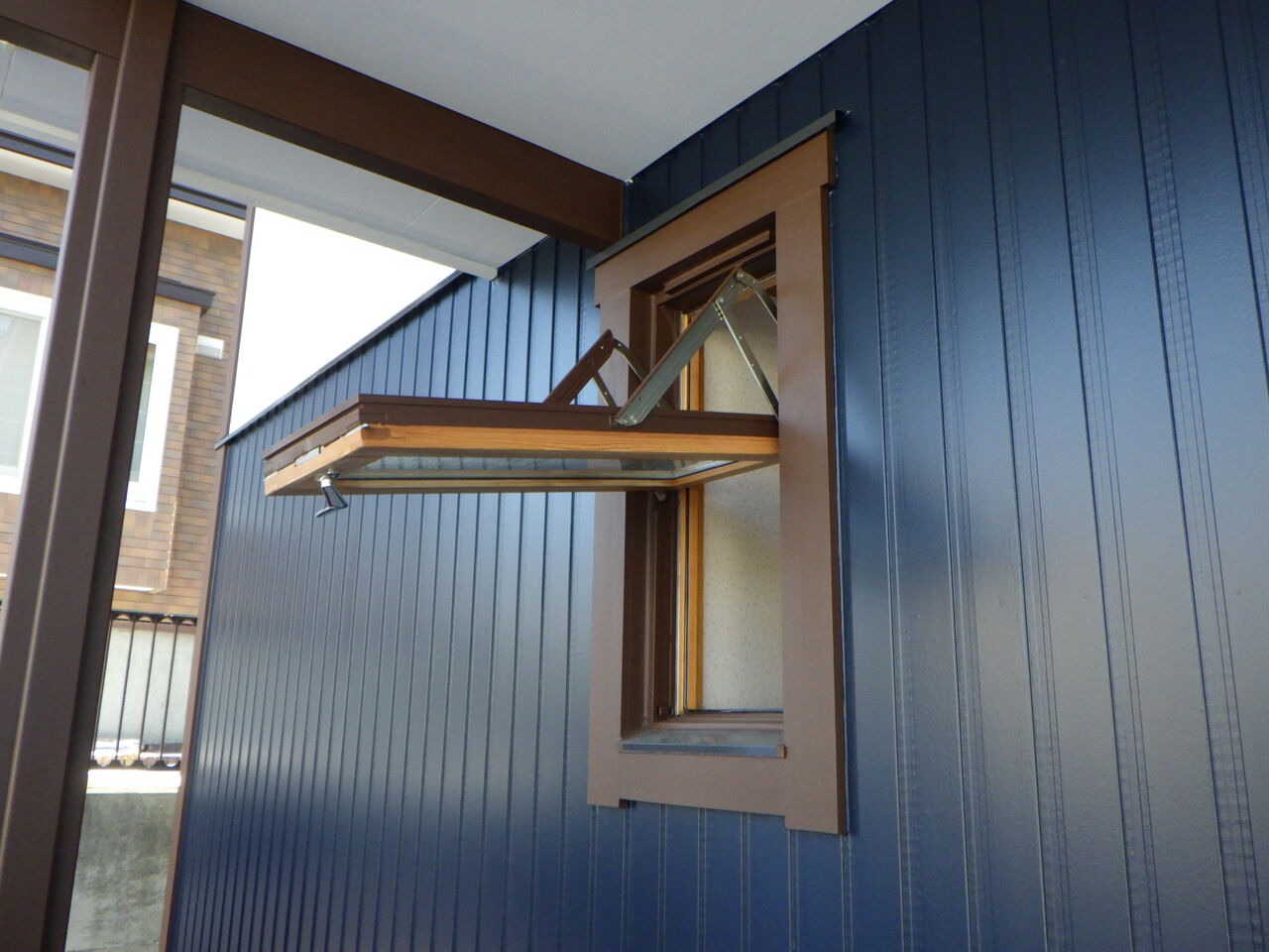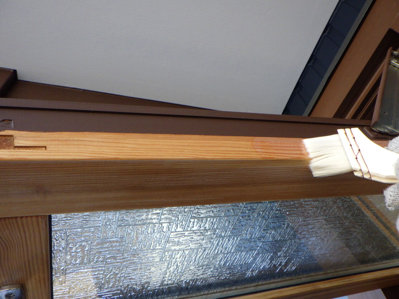 その際、施主様より木製回転窓の室内側の塗装も依頼されていました。